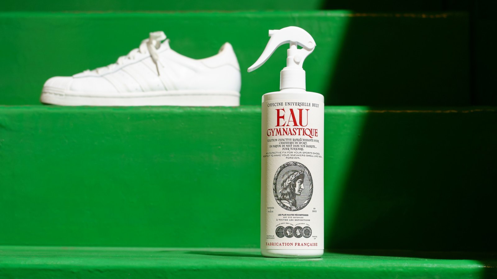 パリ発の総合美容専門店、オフィシーヌ・ユニヴェルセル・ビュリーのクリエイティブを一手に担うラムダン・トゥアミがこのたび試みた香りの実験は、この新品スニーカーのニュアンスを再現すること。完成したスプレー製品「オー・ジムナスティック」を靴の内外にシュッと吹きかければ、古ぼけた一足でも購入したときの熱い思いが蘇る。天然由来の成分をマイクロカプセルに封じ込めた水性ベースのスプレーは、足を踏み出すごとに弾けて香る仕組み。ただし成分は広がらず靴を脱いだときに感じられる程度だから、周囲に香りを振りまく心配は少ないだろう。