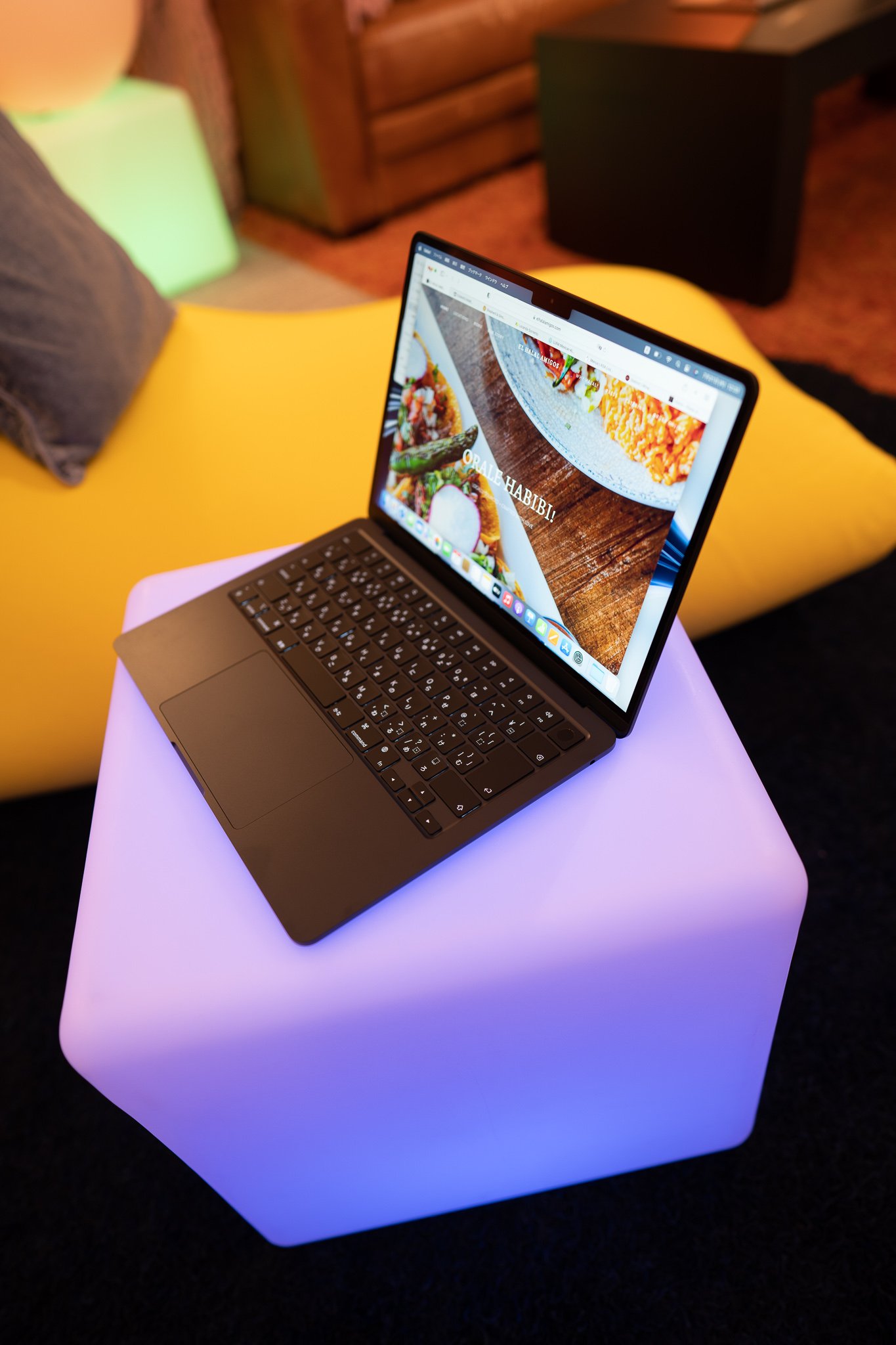 もうひとつ明確な進歩と言えるのが、筐体のデザイン。手前になるにつれ薄くなる傾斜のついた筐体から、全面が同じ厚さのフラットな型に変わった。昨年発表されたMacBook Pro 14インチを踏襲するかのようなデザインだ。特に話題となったのが、色のラインアップにミッドナイトと名付けられたブラックが加えられたこと。これまでにない濃いブラックは、一見MacBookに見えないくらい新鮮に映る。マットな質感には、高級感が漂う。だが、やや指紋の跡がつきやすいのが気になる点だ。カラーはこの他に、スペースグレイ、シルバー、スターライトがある。