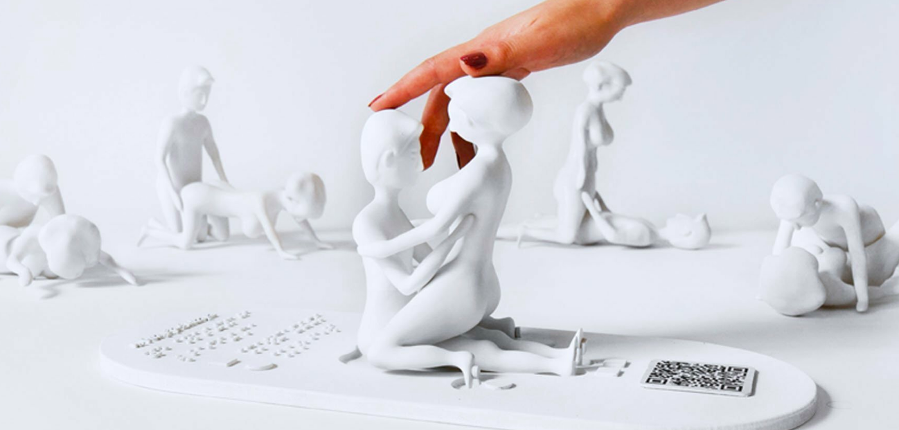 第二の目的は、3Dプリンターで製作されたそれぞれのフィギュアの外観を描写することだ。そのためにクルシェフスカ氏は、フィギュアが表現する体位を、目の不自由な人が「知覚」するのに最も近道とされる、特徴を触知できる点字を取り入れた。