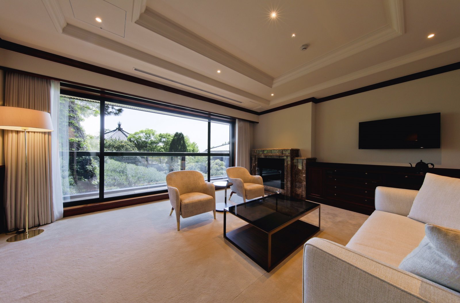 スイートルームは全3室。奈良公園に面した客室からは、興福寺の国宝・北円堂を望める。バルコニーに出てひと息つくのもお薦めだ。
