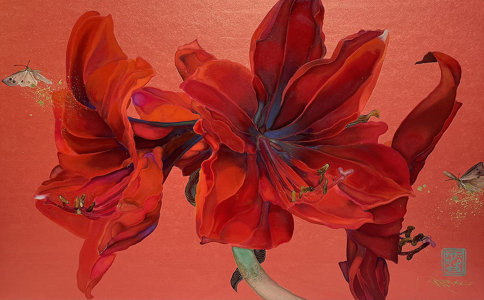 岩田は情熱の赤色を多用して描く「花ばな」、藤原はシュールでグロテスクな「人や生き物」を描く。その個性と作風はある域では同じであり、ある域では反目し合う。生まれ育った土地も、絵画を学んだ土地もそれぞれ異なる2人の共通点は、同じ生れ年であるという点だけだ。初めての2人展、どのような競演を見せてくれるのだろうか。ぜひ足を運んで体感してほしい。