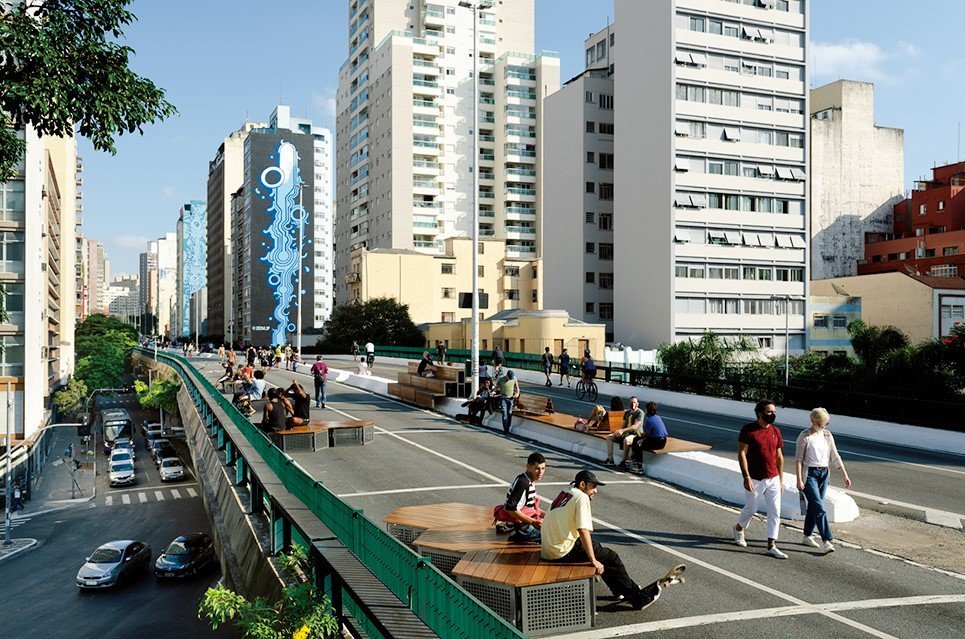 サンパウロの中心街を貫く高架道路「ミニョコン」は、週末になると歩行者天国となる。もっと快適に利用してもらおうと、5月から市が簡易的なベンチを設置した。52年前にラテンアメリカ最大の建造物として開通した高架道路は老朽化が進み、騒音に加え、高架下に排気ガスが充満することや、ホームレスたちが集まるなどの理由により取り壊しを求める声も少なくない。