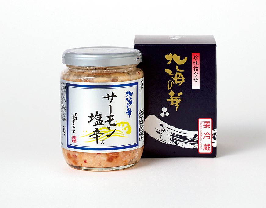山・野・海の幸を、漬物や珍味に加工する三幸。その発酵技術を活かし、アトランティックサーモンの希少部位であるハラスを、新潟産の米麹に漬けて発酵・熟成させたのが「サーモン塩辛」。とろっとしたハラスの舌触りに、プチッと弾ける国産イクラの食感がアクセントになり、ご飯との相性は抜群。塩気も穏やかで、パスタの具にも最適だ。非加熱のため、日ごとに熟成が進みハラスの旨味が増していくので、じっくり味わいたい。