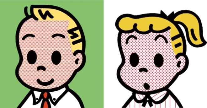 1950〜60年代のアメリカのコミックやテレビアニメ、ポップアートなどを愛した原田。なかでも簡潔な描線とカラフルな色彩で描かれたキャラクターの数々は、その後の日本の“かわいい”文化に大きな影響を与えた。