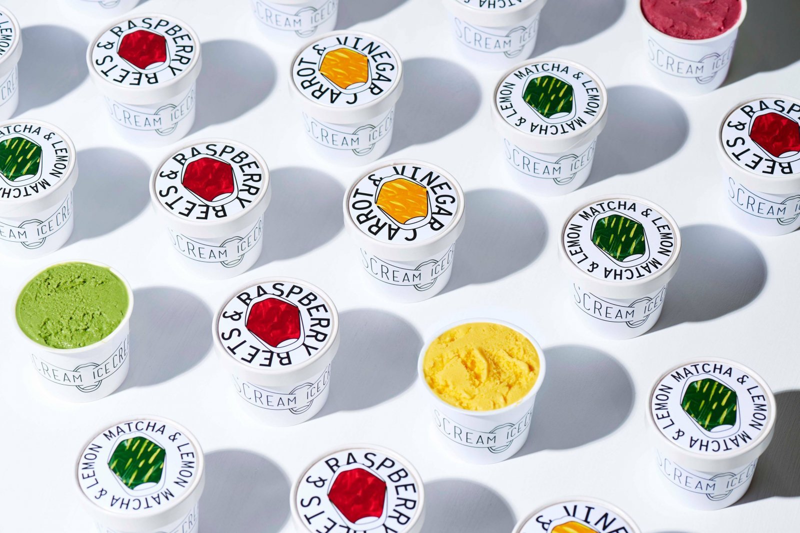 第1弾となる商品は3種類。たっぷりの福岡県産のビーツにラズベリーの爽やかな酸味が合わさった、鮮やかなピンク色の「ビーツ&ラズベリー」、皮ごとキャラメリゼしたレモンと苦味のある抹茶をミックスし、古蓮の冠商品「無添加抹茶アイス」へのオマージュが込められた「抹茶&レモン」、そして甘みと瑞々しさが溢れる福岡県産のニンジンを使用し、キャロットラペの味をアイスで再現した「キャロット&ビネガー」が展開されている。今後も旬の食材を使った限定フレーバーが登場する。