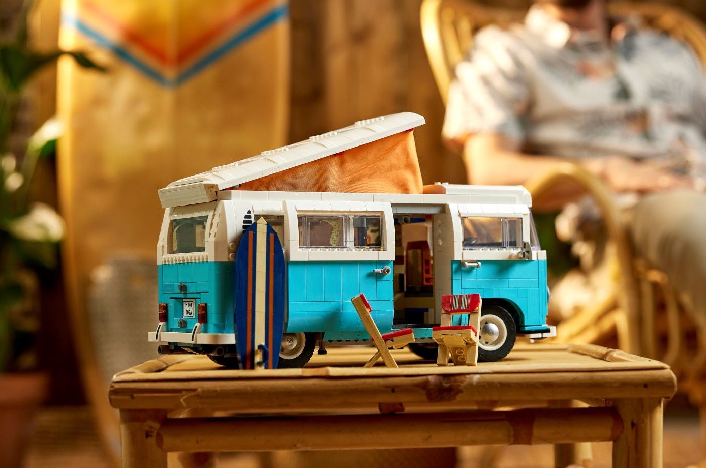 2011年に、「フォルクスワーゲンT1キャンピングカー」を再現したセットを販売してから10年の時を経て、後継モデルとなるこの「フォルクスワーゲンタイプ2バスキャンピングカー」を発表。新しいセットは、これまでよりも大きく新しいペイントカラーで再現され、スライドドア、トレードマークであるラップアラウンドベイウィンドウ、フロントフィンドシード(フロントガラス)、テント付きのポップアップルーフ、そして一目で分かる“顔”が特徴だ。