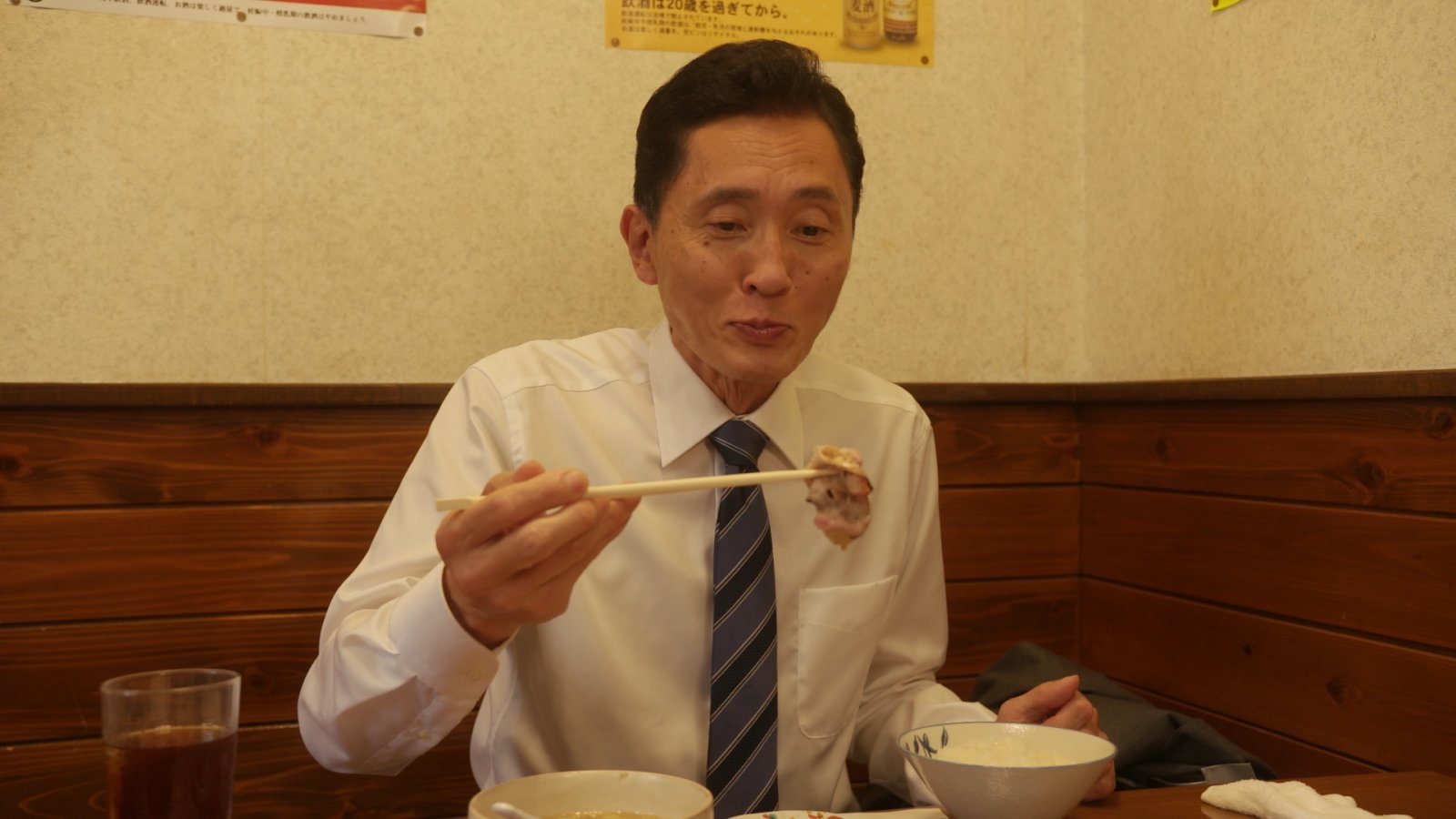商談を終え、誰もいない海辺でマスクを外し一息ついた途端、いつものごとく空腹感に襲われた五郎は、再びマスクを着用して店探しに繰り出す。真夏の暑さにも負けず彷徨う姿は、さながらサバンナの飢えた肉食獣のようだ。「焼肉 ミートショップ ふじ」の看板を捉えた目には狂気すら宿っている。