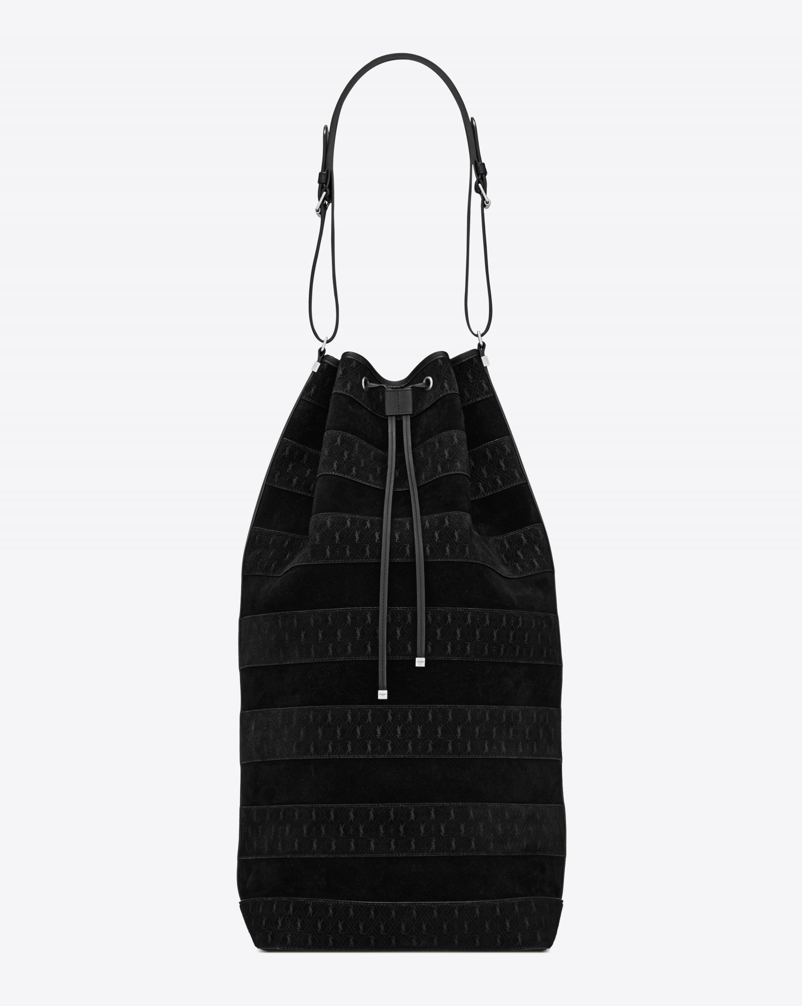 LE MONOGRAMME DUFFLE 72H IN BROWN COATED CANVAS WITH MONOGRAM SAINT LAURENT ALL OVER (W56.5×H39×D26cm)¥262,900(税込) ※オンラインストア限定 COURTESY OF SAINT LAURENTLE MONOGRAMME LONG BUCKET BAG IN BLACK SUEDE LEATHER AND BLACK SUEDE MONOGRAMME SAINT LAURENT PATCHWORK(W27×H58×D18cm)¥313,500(税込)COURTESY OF SAINT LAURENTLE MONOGRAMME TOY SHOPPING BAG IN BROWN COATED CANVAS WITH MONOGRAM SAINT LAURENT ALL OVER(W25×H28×D8cm)¥185,900(税込)COURTESY OF SAINT LAURENTLE MONOGRAMME COEUR IN BROWN COATED CANVAS WITH MONOGRAM SAINT LAURENT ALL OVER(W20×H17×D6cm)¥137,500円(税込)COURTESY OF SAINT LAURENT