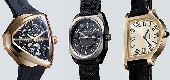 「クロシュ」とは鐘のことだから、この腕時計はリューズが上の姿勢が正しい。そうすると12時が頂点を指し、ロゴも正立するレイアウトを採る。それを横にした表情もまた正しく美しいという、カルティエの卓抜な美意識の産物だ。名デザインに再び光を当てる「カルティエ プリヴェ」に加わった逸品で、オリジナルのモデルは1921年にまで遡る。