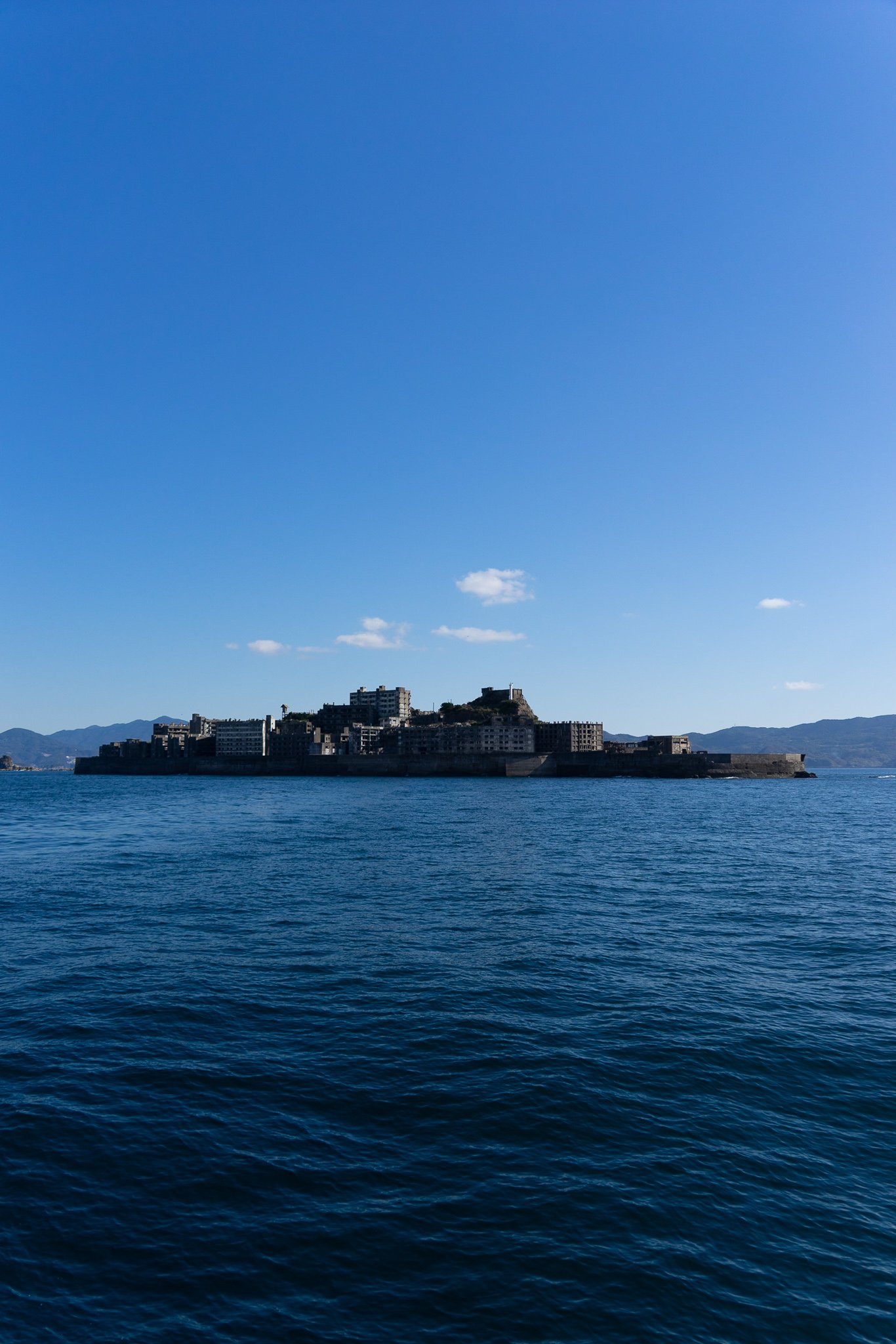 長崎港からフェリーで約30分。近づくにつれその姿を克明に現す絶海の孤島には、息を飲まずにはいられない。ほとんどの窓ガラスが破損し、黒々と劣化したコンクリートの高層アパートがひしめき合うように並ぶ光景が、上陸する前から目に飛び込んでくる。東シナ海の荒波から守るために設けられた屈強な護岸堤防が島全体を覆うさまは、要塞のように威圧的だ。
