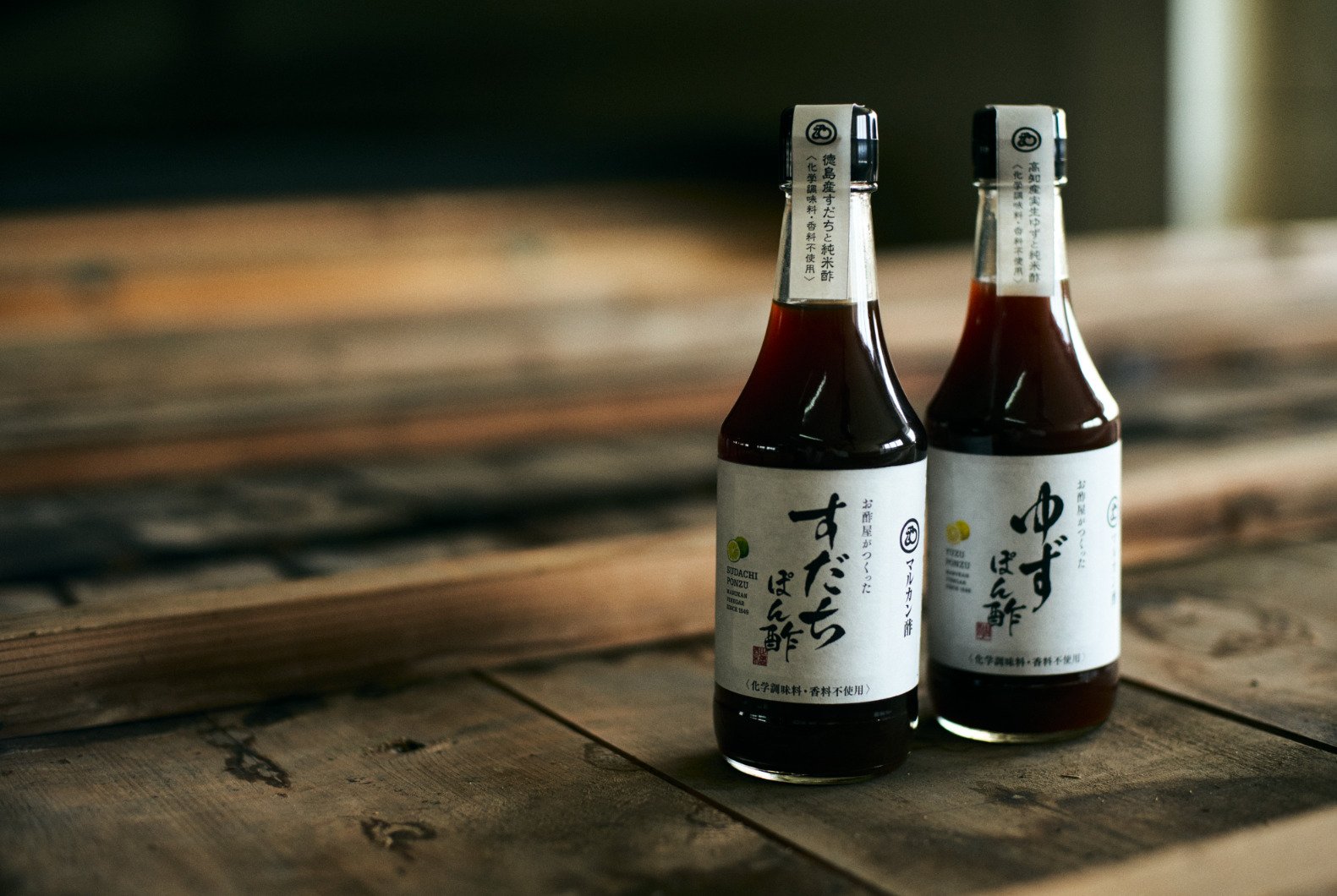 「お酢屋がつくった ぽん酢シリーズ」の原材料のお酢は、自社でお米から醸造した風味豊かなお酢屋の純米酢。だしは、北海道産真昆布だしと焼津産かつお節だしを使用している。化学調味料や抽出エキスは使用せず、ゆず・すだちのシンプルな味わいが引き立てられている。