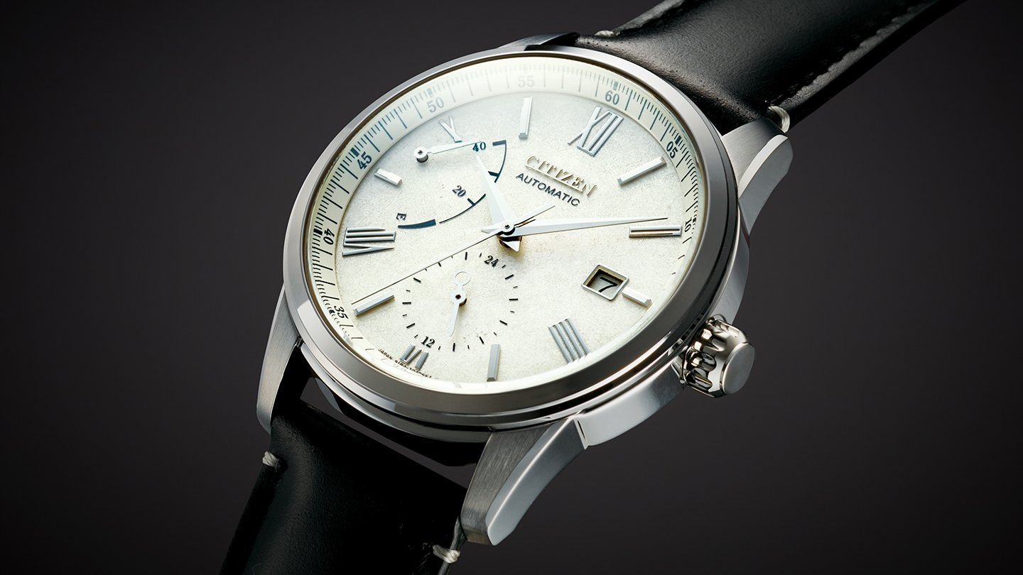 強力な粘着力を持つウルシの樹液をコーティング素材とする漆塗りは、酸やアルカリに強く、抗菌性も極めて高いといわれる。高級食器やアクセサリーなどに利用されてきた日本古来の伝統技法だが、この漆に銀箔をまぶしたダイヤルを持つ新作が「シチズンコレクション」から登場した。柔らかな印象を与える白を基調にした「繭色(まゆいろ)」と、紅葉する森林が日没時に迎える薄暮をイメージした「鈍緋色(にびひいろ)」の2モデル。