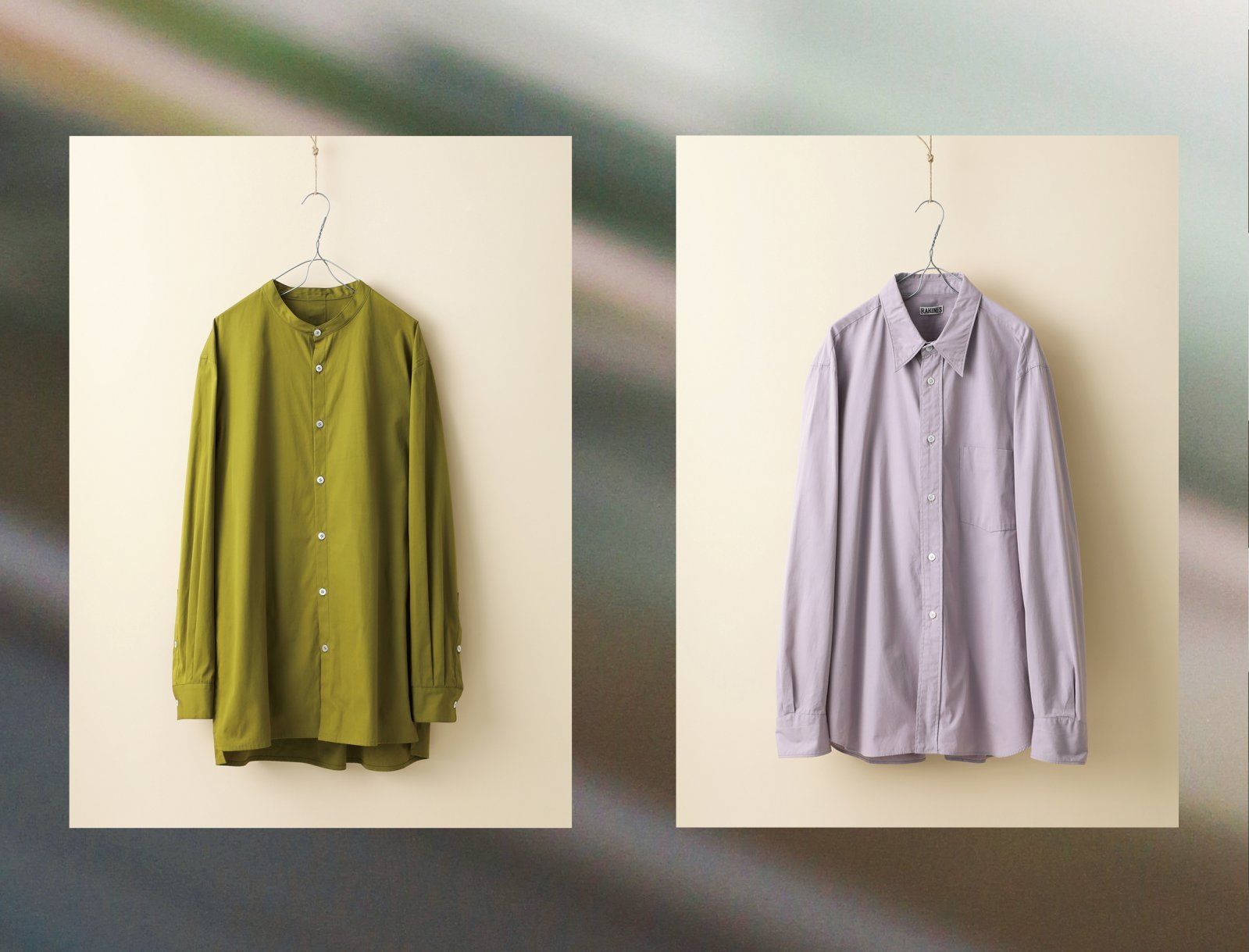 和モダンな配色を楽しむ、バンドカラーシャツ