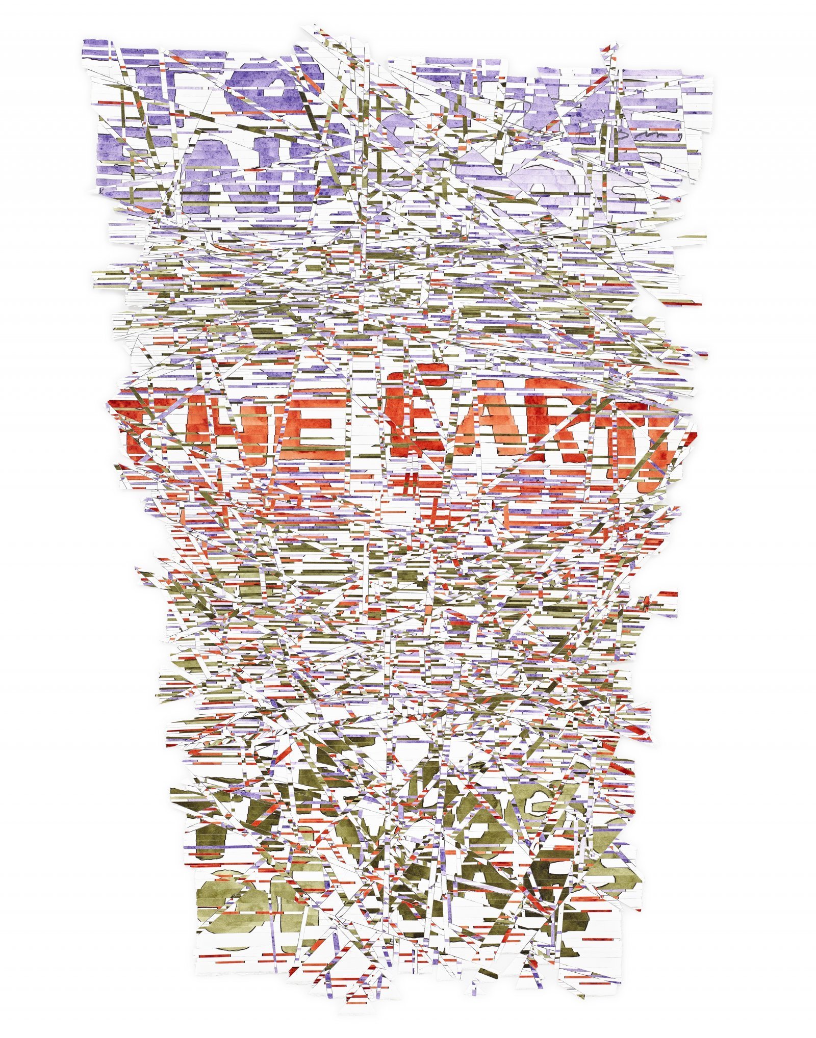本展では、1980年代の初期作から近作まで、40年にわたるロニ・ホーンの思索の軌跡をたどる。19世紀を代表するアメリカの詩人、エミリ・ディキンスンが書いた手紙の言葉を取り出し、シンプルな立体に落とし込んだ『エミリのブーケ』。また、水彩で描かれた文学作品からのフレーズを、細かく裁断してコラージュしたシリーズ『犬のコーラスー地球の果てまで滑り出せ』。これらの作品では、ホーンの独立した自我に寄り添ってきたであろう古典文学が、文脈から切り離された文字というフォルムになって自由に反転したり、色彩を伴う断片として新たなアートを構築している。