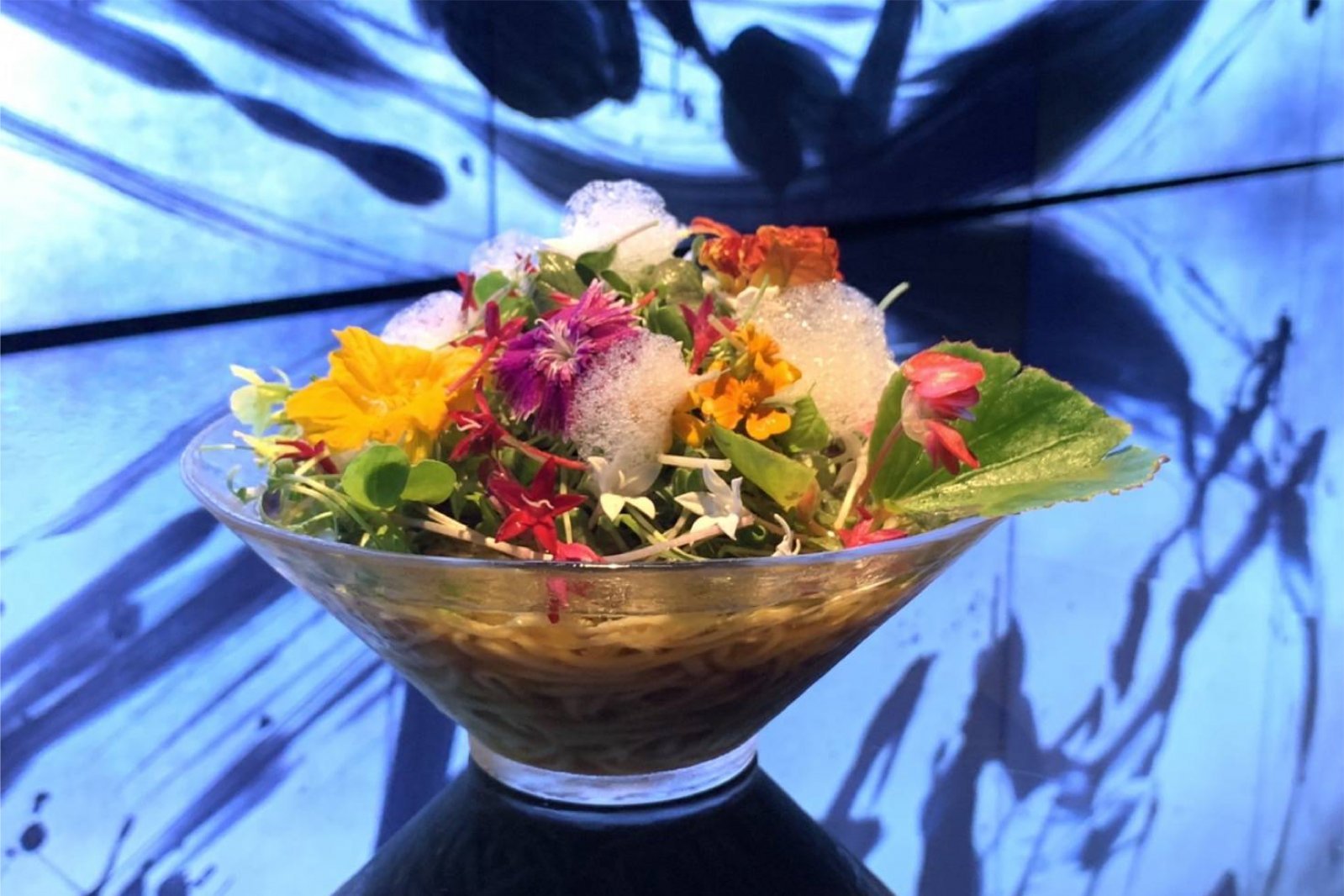 今回、チームラボプラネッツにオープンする「Vegan Ramen UZU Tokyo」では、テイクアウト可能なヴィーガンラーメンを、新たに公開する作品空間「虚像反転無分別」や「空と火のためのロングテーブル」でも楽しむことができる。「Vegan Ramen UZU Kyoto」のメニューに加え、チームラボプラネッツだけで食べることができる花のヴィーガンラーメンや茶のヴィーガンラーメンなどの特別なオリジナルメニューも堪能することができる。