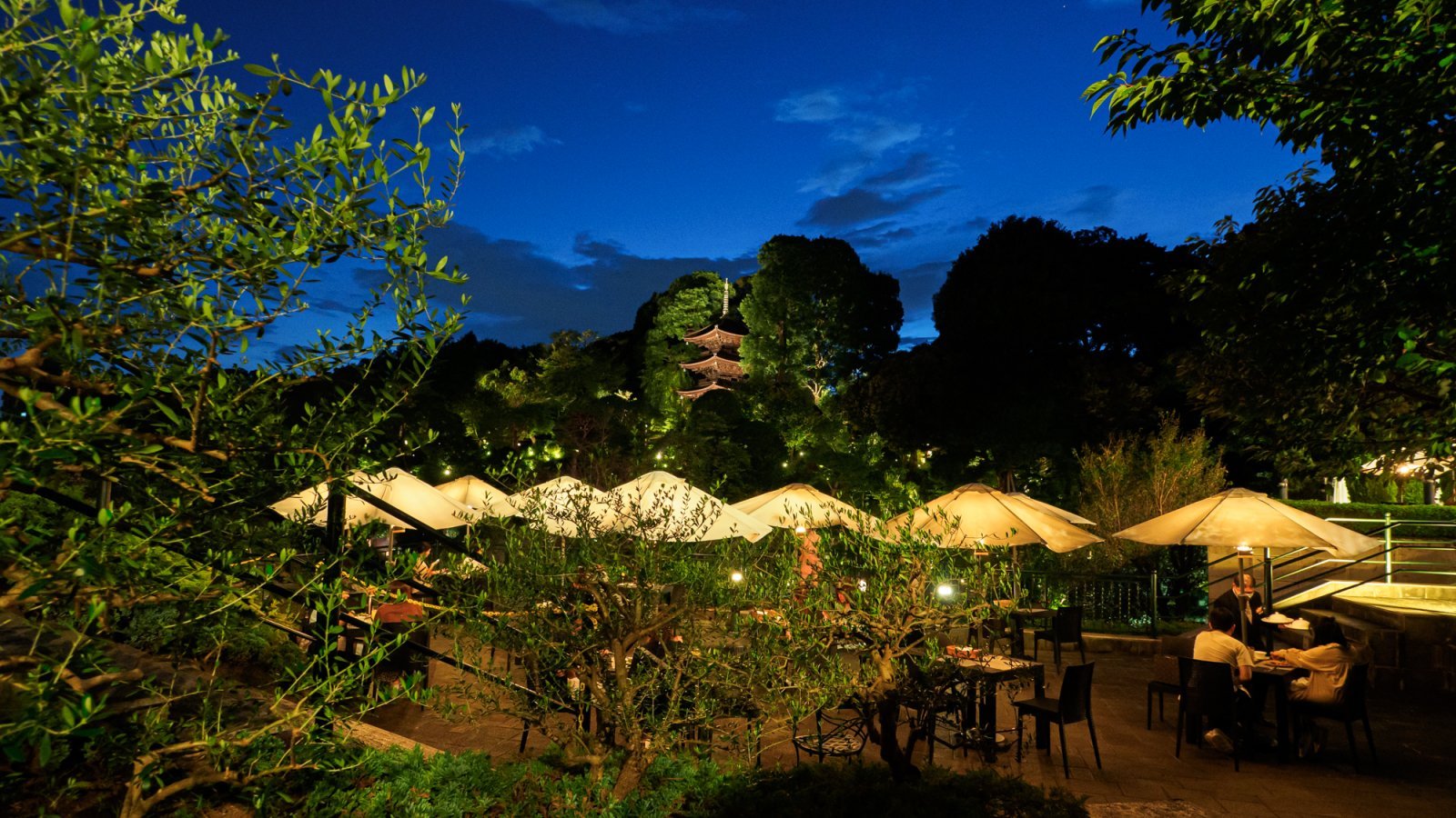 ふだんはウェディングの撮影スポットなどに使われる、大庭園を臨む絶景のガーデンテラスを屋外レストランに仕立て、夜の東京雲海とともに華やかな時間を提供するのがこのディナーなのです。