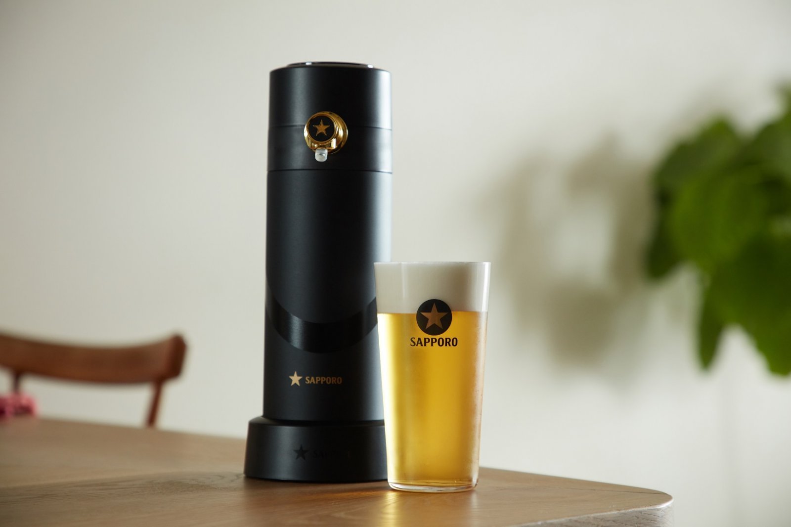 無駄を削ぎ落とした黒い円柱形のサッポロ生ビール黒ラベル「オリジナルビヤサーバー」は、自宅のキッチンやダイニングテーブルに置いても様になる。しかも単3電池2本で作動するので、コードレスですっきり。置く場所を選ばないのがうれしい。
