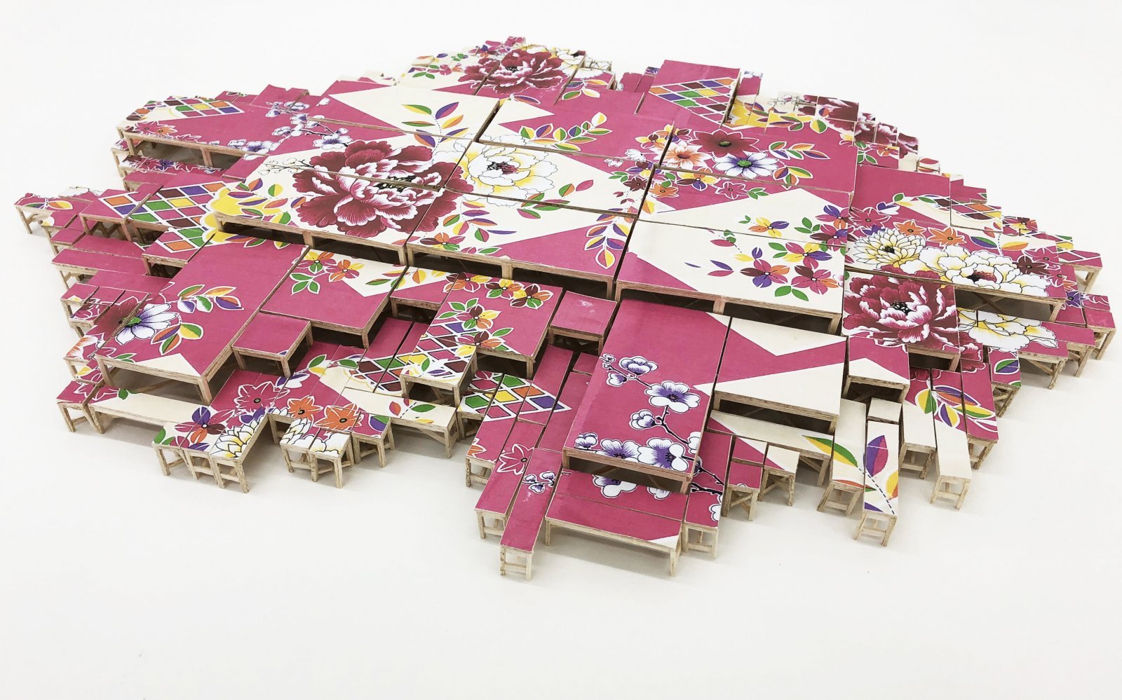 モチーフになっている「台湾花布」は、台湾で伝統的に日常の至るところに使われてきたもので、台湾特有の言語であるとも言えます。布に花や植物の柄がプリントされているというのは日本をはじめ他の国々にも見られます。