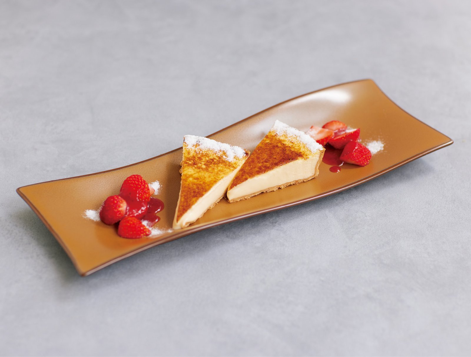 このチーズケーキの味を再現するためにこだわったのが、ベースとなるフロマージュブラン。北海道の美瑛放牧酪農場で育ったストレスフリーの乳牛から搾るミルクを使用し、同店のために特別に開発されたもの。イートインだからこそ味わえる、とろけるテクスチャーは「生ではなく、かたちをとどめるギリギリの焼き加減で、トロトロの状態に仕上げました」と、戸谷尚弘シェフ。サクッと軽やかなタルト生地の香ばしさは、食感と風味のアクセントに。大人が喜ぶ、クセになる味わいだ。
