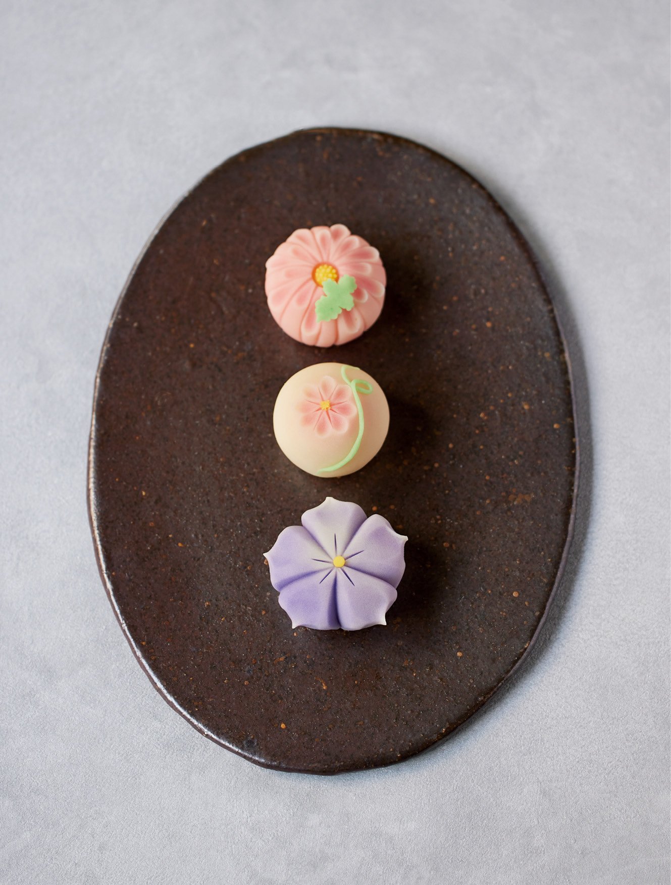 色彩の濃淡が雅な菓子は、店主の寿じゅ里りさんがひとりでつくる。「小さい頃から菓子づくりが好きで、和菓子はほぼ独学」。だからこそ枠にとらわれない新たな菓子を生み出す。創作の練り切り「嬉々(きき)」は、塩気のあるチーズを中に忍ばせ、レモンが香る黄身あんで包み、さらにまわりを白あんで仕上げる。中心のチーズはなめらかな質感で、レモンの香りを纏い、まるでチーズケーキのよう。日本茶だけではなく、紅茶やワインとも合う、和と洋の垣根を越えた逸品だ。