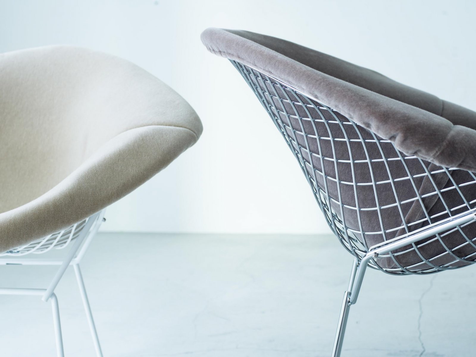 また10月9日(土)から、ロンハーマンがセレクトした「knoll(ノル)ベルベッドフルカバーダイヤモンドチェア」が二子玉川店と六本木店で販売される。彫刻家のハリー・ベルトイアがミッドセンチュリー期にデザインした金属ワイヤーによる座面が象徴的な「ダイヤモンドチェア」。今回、ベースとなるフレームは、シルバー、ホワイト、ブラックの3色から選べ、ファブリックはknoll社の中でも最高峰のベルベットを採用。どんな空間でもマッチする汎用性と存在感を念頭に、アームx カバーの相性を検証し、「ベージュカバーx ホワイトアーム」「グレーカバーx シルバーアーム」「ブラックカバーx ブラックアーム」の三種類を用意。また、発売と同時に20 色あるベルベットとアーム3 色の中からお好みの組み合わせでオーダーすることも可能だ。ロンハーマンで、秋の装いをチェックしつつ、モダニズムが香るデザイナーズチェアの魅力に触れてみてはいかがだろうか。