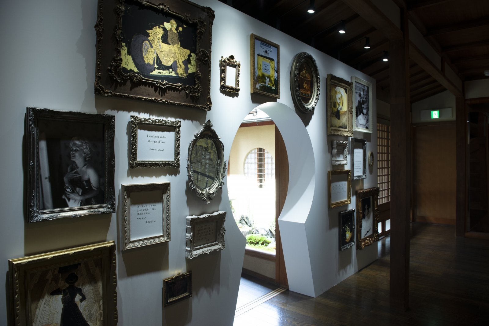 書き下ろしで3章に仕上げた新作は、ガブリエルの多面性を何枚もの鏡に見立てると同時に、ガブリエルのアパルトマンの印象的な鏡の数々からフランス語で鏡の複数形を表す『MIROIRS』と名付けられた。インスピレーション源となったシャネルのアーカイブ、創造段階での下絵、完成原画、という3層を組み合わせた展示空間をおおうちおさむがデザイン。古き京町屋の空間に物語世界が広がり、没入へと誘う。