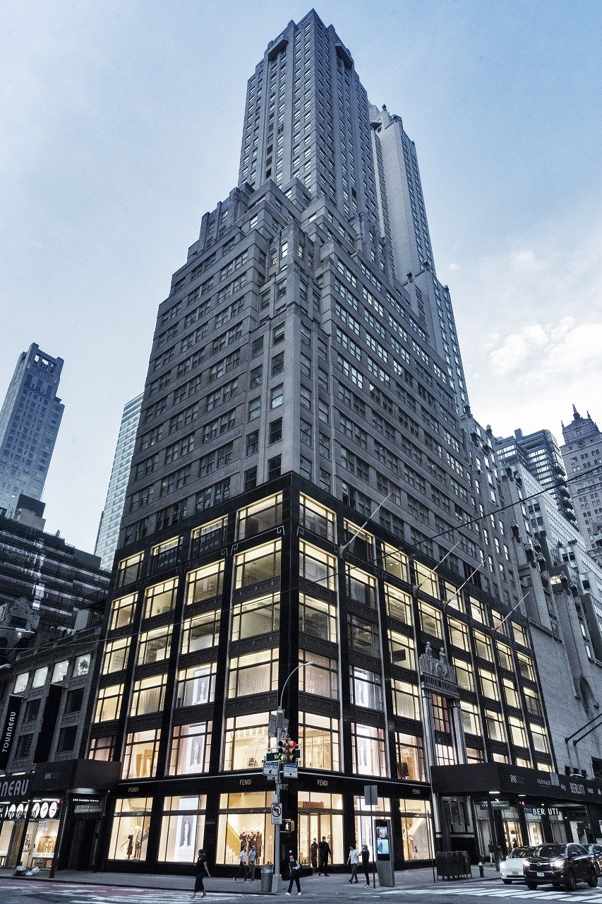 フェンディの新店は、名だたるラグジュアリーブランドが軒を連ねる57丁目界隈の中でもひと際、目をひく、アールデコ調のフラー・ビル内にある。マディソン街との角地に位置する、1929年に完成した市の歴史的建造物だ。
