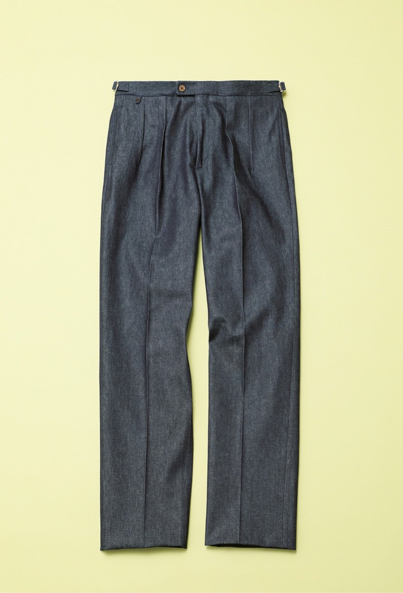 フランスのパンツ専業ファクトリーであるベルナール ザンスのデニムは、サイドアジャスター、2インプリーツ、ワイドテーパードなど、伝統とモダンの要素が品よくミックス。素材にヨーロッパ産のオーガニックコットンを使用、スラックスのような佇まいで洗練された雰囲気を醸す。¥41,800/ベルナール ザンス(シップス 銀座店 TEL:03-3564-5547)
