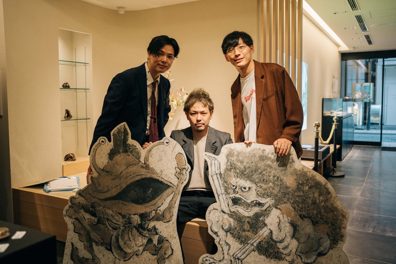 まず注目したいのが絵巻の素材として使われている和紙だ。和紙の素材には、真菰(マコモ)という草が使われた。真菰は出雲大社などで神事に用いられ、中国や台湾では食材としても重宝される。谷村氏は、さまざまに姿を変えながらも人々の暮らしに寄り添ってきた真菰に魅せられ、この草に描くことを決めた。草を紙とするにあたっては、紙漉きの段階から関わり、繊維やパウダーの調合まで試作を積み重ねた。