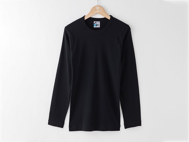 久米繊維の製品は日本らしい品質が追求されながら、リーズナブルな点に大きな特徴がある。マッチゲTシャツも有名人とのコラボモデルながら価格は通常品と同じだ。このたび新作としてリリースされた長袖タイプも、やはり価格は据え置き。下着として気兼ねなく毎日着られるよう配慮されている。