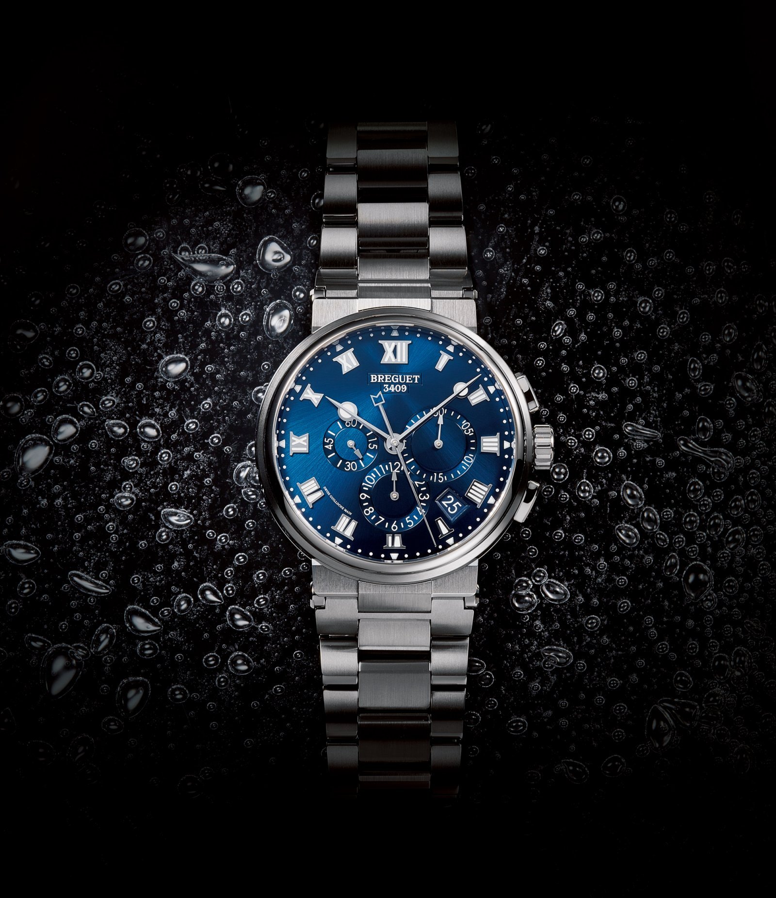 航海術の要であり、あらゆる時計に優越して正確さを求められるマリン・クロノメーター製造の責任を一身に負うその職は、同時代における唯一にして最高の時計師を意味していた。現代のマリーンは、ブレゲの手がけた誇り高きマリン・クロノメーターが、腕時計に化身した末裔ともいえる。1990年にスタートしたコレクションは、2004年にマイナーチェンジ、18年に傑作との評判が高い“3代目”の現行シリーズに移行した。ケース素材はローズゴールド、ホワイトゴールドに加え、軽量かつ頑強なチタンも選択が可能になっている。