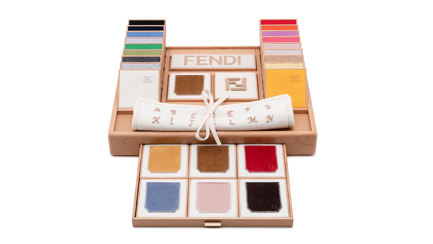 同サービスでは、まずベースカラーを18 色のスワッチから選ぶことが可能。ブラック、グレー、 ベージュなどのニュートラルカラーに加え、ライトブルー、サンイエロー、レッド、ピンクにいたるまで多彩なカラーラインアップが用意されている。続いて、Vネック、クルーネック、タートルネック、ベストカーディガンなど6つのモデルからスタイルを選ぶ。無償で3文字、あるいは「カーリグラフィ」ロゴの刺繍を1カ所入れることができ、追加のオプションとして、6色展開のスウェード製ポケットや、ブランドロゴのインレーデザイン、トリプル「FF」ロゴデザインなどを、胸元や裾、袖口、後ろ襟に入れることも可能だ。オーダー後は、イタリア・トスカーナ地方を拠点とする高品質カシミアの専門サプライヤーで生産し、約8〜10週間で手元に届く。この機会に自分だけの特別なパーソナライゼーションを楽しんでもらいたい。