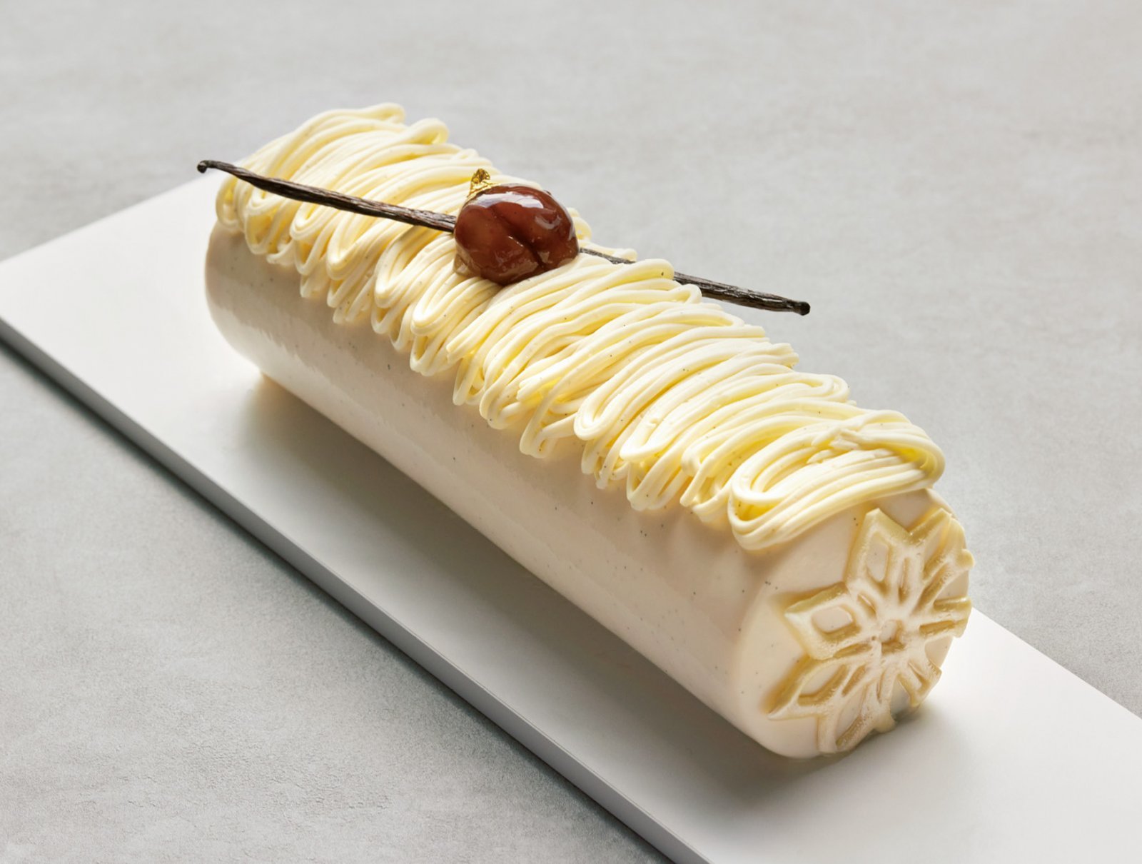 「日本は食材のバラエティが素晴らしく、創造が無限に広がる」と語るのは、新たにパーク ハイアット 東京のエグゼクティブ ペストリーシェフに就任したジュリアン・ペリネ。食材を探求し、素材のフレーバーや色合いを活かしたスイーツが評判だ。初のお披露目となるクリスマスケーキの中で、注目作は「ブッシュ フロコン」。フロマージュブランには最低限の砂糖しか使用せず、甘さを控える代わりに、タヒチ産バニラの芳醇な香りと、中心に忍ばせたマロンクリームで甘みを表現している。