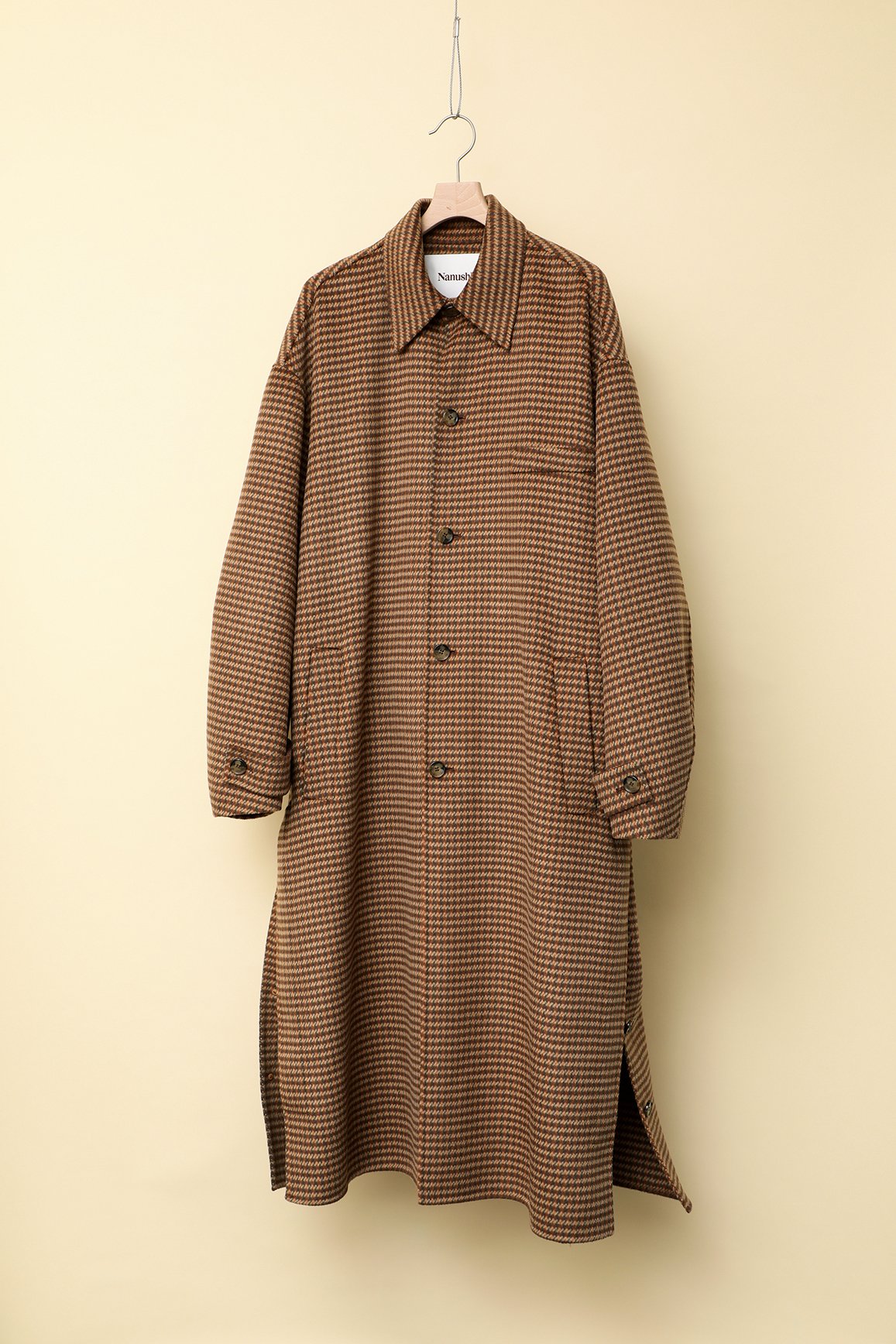 ハンガリーのブダペストを拠点とし、2006年にスタートしたナヌーシュカ。こちらはウールとシルクの混紡素材による美しいドレープが印象的なコートだ。ベルトの付いた袖と直線的に強調された襟とが、トレンチスタイルを彷彿させる。赤、黒、茶、ベージュの4色で形成されたチェック柄も目を引く。¥140,360(税込)/ナヌーシュカ(ヒラオインク TEL:03-5771-8809)