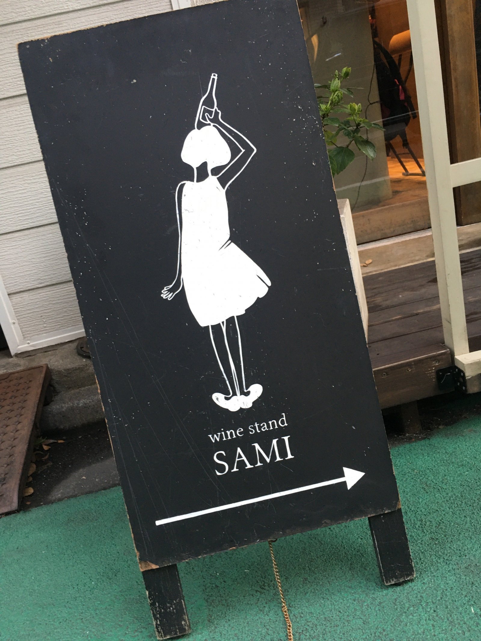 一輪の花のように、ワイン瓶を頭の上に掲げた華奢な女性。店前に立つ看板がチョンちゃんこと静恵(チョンへ)さんのリトルオーサカ、「wine stand SAMI(ワインスタンド・サミ)」を、そのまま表している。しなやかなのに力強く、軽やかなのに凛としている。誰もが、一度訪れると夢中になる、新時代の立ち呑みスタンドだ。