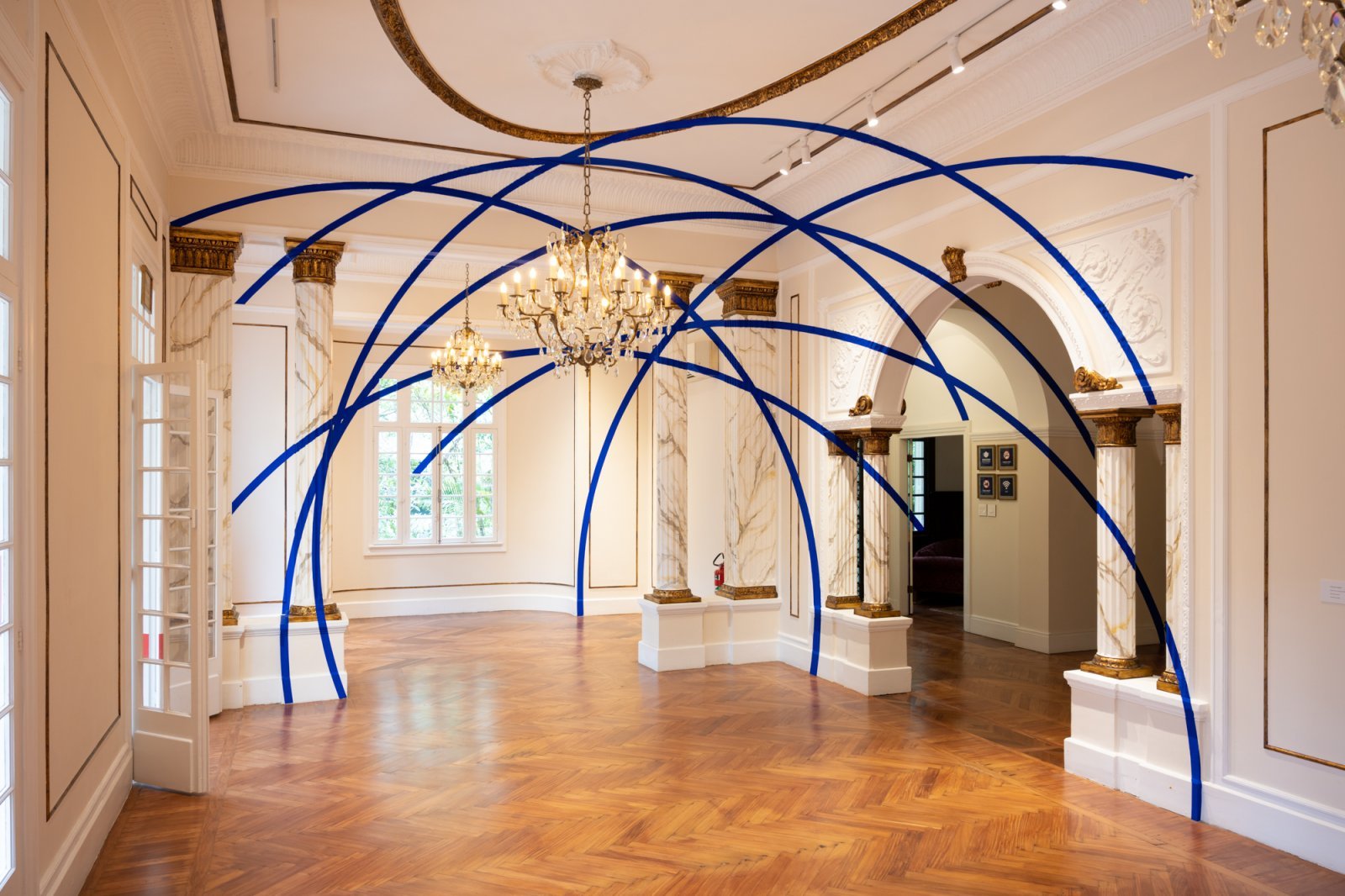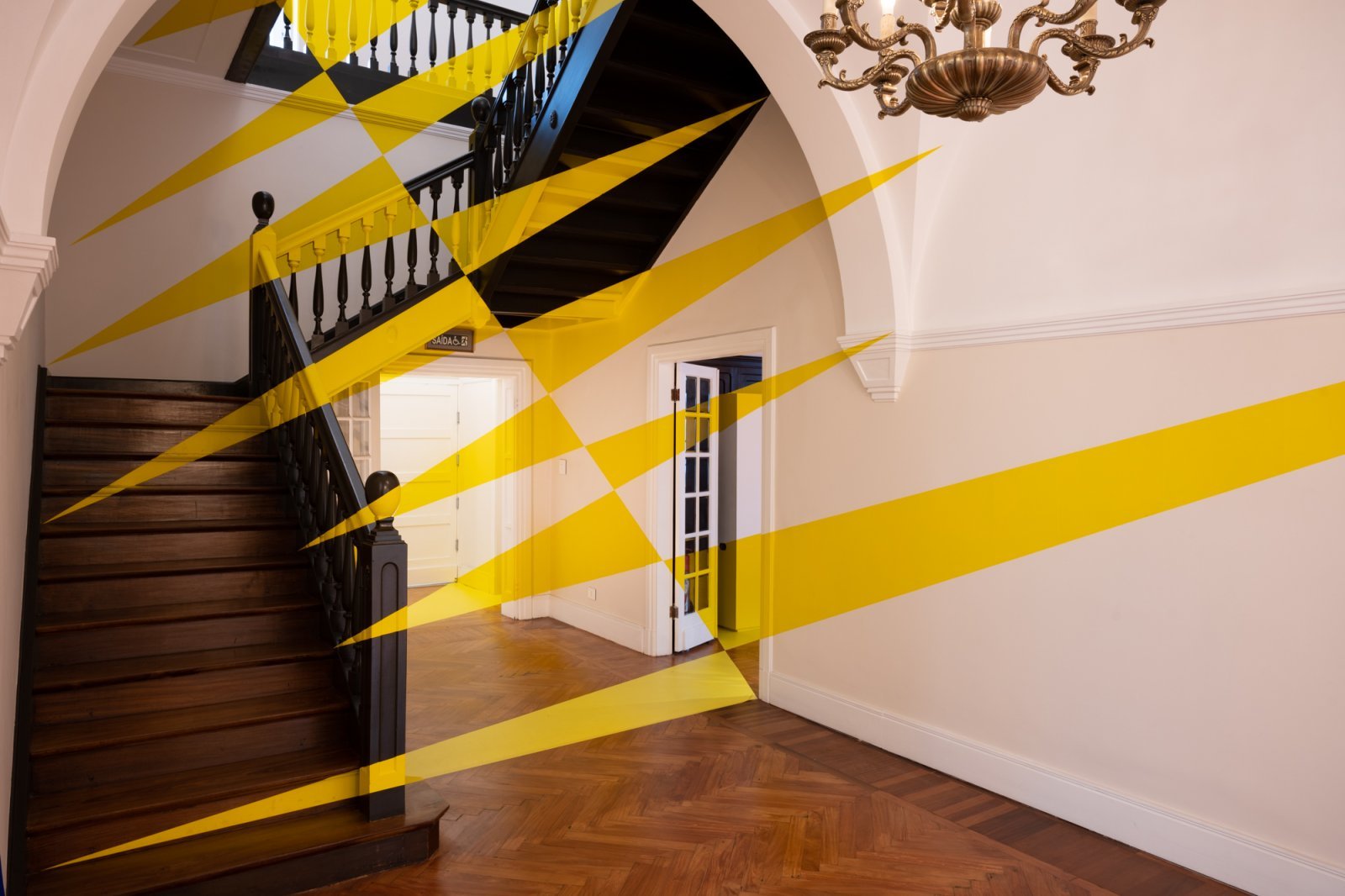 屋敷の建築的魅力を伝える目的を兼ねて、現在はスイス人アーティストのフェリチェ・ヴァリーニの個展が開催中。ヴェリーニの作品は、現実の空間に平面的な幾何学模様を描くもので、まるで一枚のレイヤーが空間に存在するかのようなイリュージョンが訪問者を魅了している。