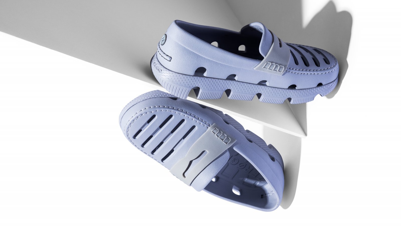 近年世界的に勢いを増しているのが、合成樹脂で一体成型されたクロッグサンダル系のシューズ。ボッテガ・ヴェネタ、バレンシアガといった先端ブランドが人気の火付け役になった。記事冒頭写真のローファーもこの流れを汲んだもの。手掛けたのはアメリカの老舗シューズブランド、コール ハーン。ローファーで名高いブランドが現代のローファーをつくるとこうなるという、洒落の効いた一足である。