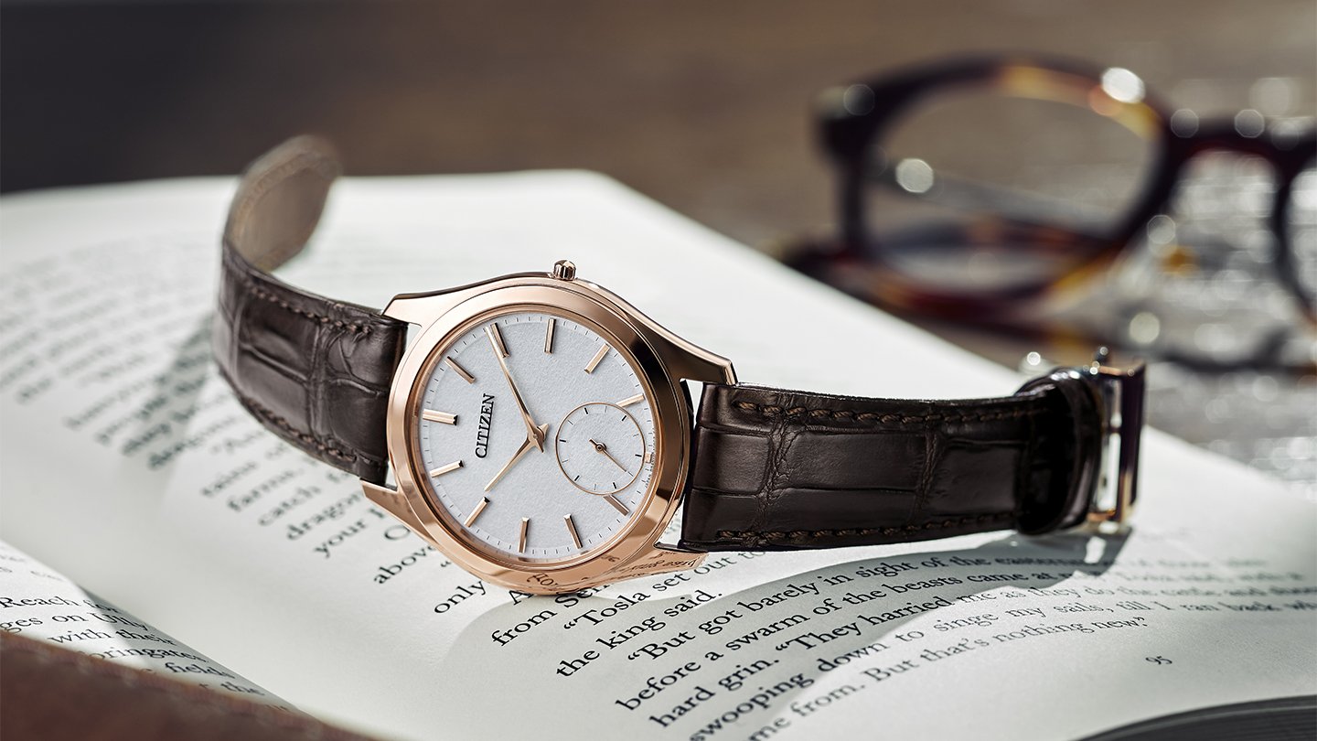 シチズンは2016年に光発電40周年の集大成モデルとして、「エコ・ドライブ ワン」を発表した。厚さがわずか1㎜の世界最薄光発電ムーブメントを搭載。時・分の2針でケース厚を3㎜以下に抑えた極薄スタイルが高く評価されてバリエーションを年々拡充してきたが、このコレクションでは初となる秒針付きモデルが新登場した。しかも、6時位置にサブダイヤルを備えたスモールセコンド。すべてを削ぎ落としてスリム&シャープに仕上げられた「エコ・ドライブ ワン」が、スモールセコンドの採用によってエレガントでクラシカルな雰囲気に変貌したといえそうだ。