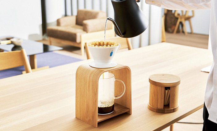 ブルーボトルコーヒーとカリモク家具のコラボレーションによる限定コーヒーグッズがお目見え。カリモク家具が一部のカフェ店舗の家具を製作した縁から今回の企画が実現した。販売するのはドリッパースタンドとフィルターケース、カッティングボードの3種類で、いずれも木の素材を活かしたシンプルなデザインだ。材料には、家具づくりの過程で出る端材や家具には使いづらい短い木材を活用している。ブルーボトルコーヒーの一部店舗の他、公式オンラインストアなどで購入できる。