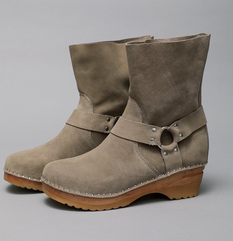 クロッグサンダルで人気のトロエントープにニードルズがデザイン別注したブーツ。丸みのあるシルエットと厚めのソールが目を引く。3本のベルトとリングで、馬具のハーネスをイメージしたデザインも特徴的。ミッドソールはウッドだが、アウトソールはラバーですべりにくい。¥58,300(税込)/ニードルズ×トロエントープ(ネペンテス TEL:03-3400-7227)