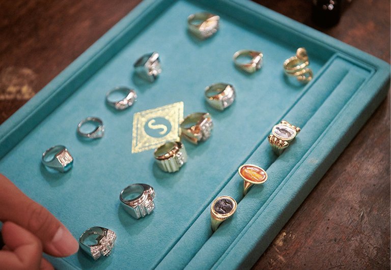 東京・原宿の一角で、希少なヴィンテージアイウエアとアンティークジュエリーを取り揃えるショップ「ソラックザーデ」。世界にも類を見ない指輪を扱うのが岡本龍允さんと竜さんの兄弟だ。この日は、スタイリストの小林新さんを迎え、龍允さんとアンティークの指輪の魅力について語り合った。ファッションのアクセサリーとしてだけでなく、世代を超えて受け継ぐことの意義とは?
