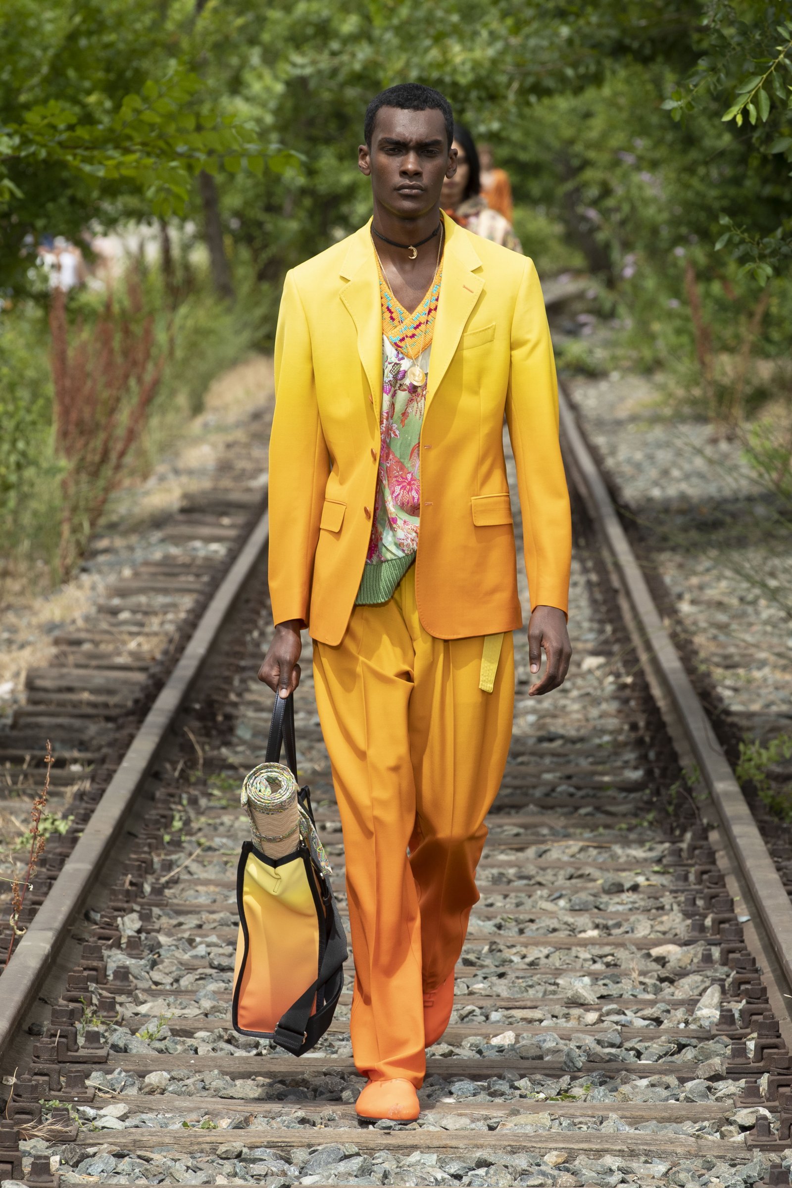 全身をカラフルに固めたショールックの数々は、プレゼンテーションのために演出されたコーディネート。アイテムの1点1点を単品で見ていけば、自身の服装に取り入れるヒントへとつながるだろう。ショーのモデルたちはロードムービーのように貨物ターミナル駅だったエクス・スカロ・ファリーニの線路の上を歩き、自由を謳歌。鮮烈なビタミンカラーが、そのスピリットをサポートした。