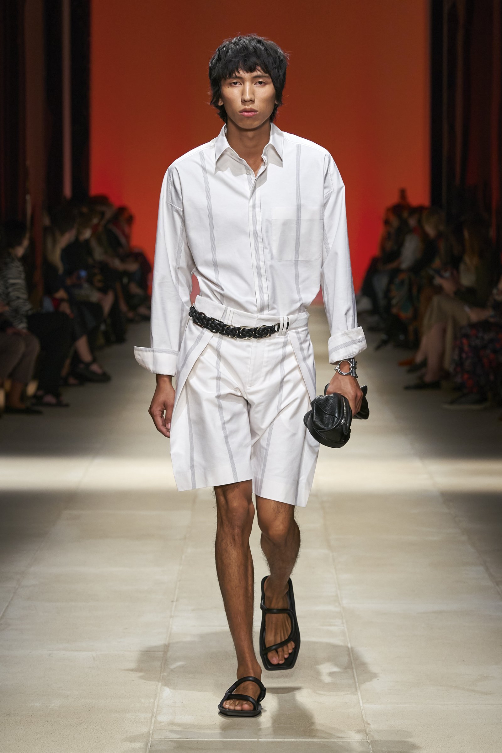 ロックダウンにより中止していたショー発表を1年ぶりに再開した今季。その間にポジティブに過去と未来を見つめてきたサルヴァトーレ フェラガモが、メゾンの源泉と再びつながっていく重要なシーズンとなった。男女のモデルが最新デザインを身に着けて歩いた会場は、ミラノの中心部にあり円形の建物が特徴的なロトンダ・デッラ・ベザーナ。柱や壁を鏡張りにつくり変えて、訪れたオーディエンスがルックを全方向から眺められるように工夫した。「自分を取り巻く世界と、そこにある自分の居場所を再確認してほしい」、という願いが込められたショーになった。
