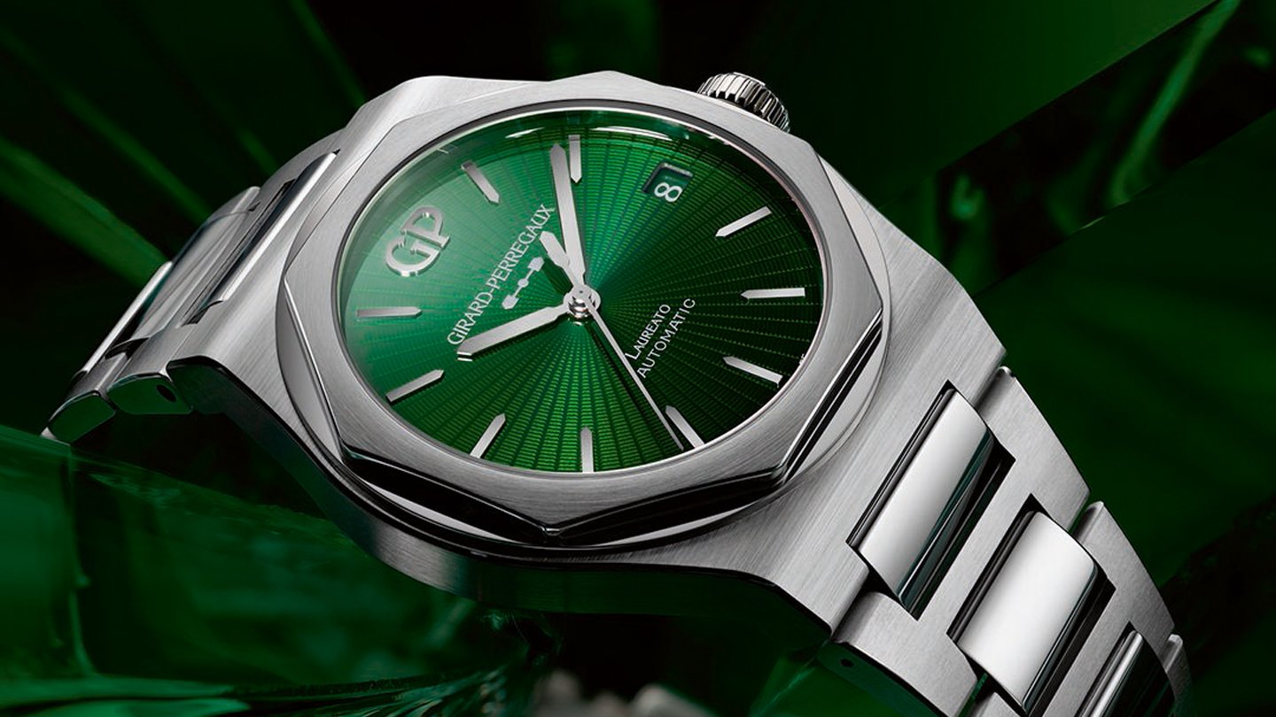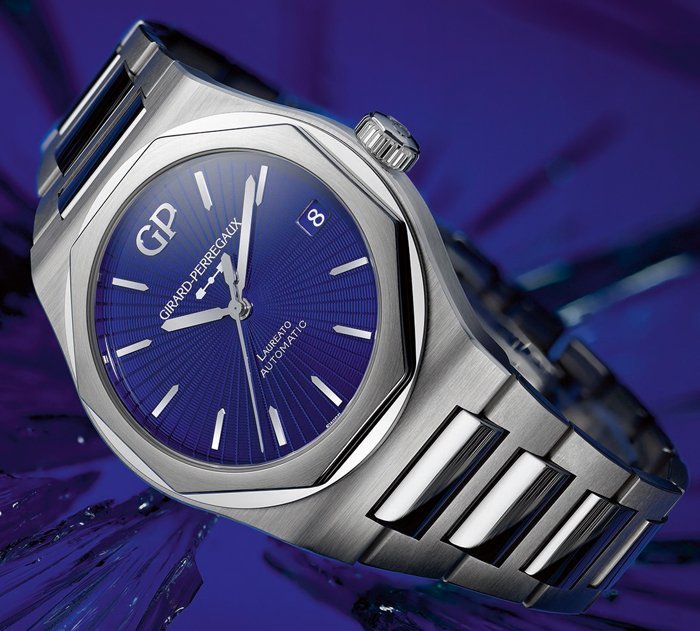 スイスの老舗時計ブランドであるジラール・ペルゴの「ロレアート」は1975年に登場したラグスポの先駆けだが、2021年に創業230周年を迎えた記念限定モデルとして、エナメルダイヤルを採用した「ロレアート 42mm エタニティ エディション」が発売された。アクティブなSS製ラグスポに伝統的な美術工芸のエナメルを組み合わせただけでなく、ダイヤルベースにはサンレイと呼ばれる放射状の彫り模様が施されており、光を直線的に織りなして反射する。ケースの円形台座の上に配置された8角形のベゼルに囲まれたダイヤルが美麗な艶を放つことで、ブレスレットと完全一体化した外観が高級感のあるエレガントな雰囲気に変貌している。