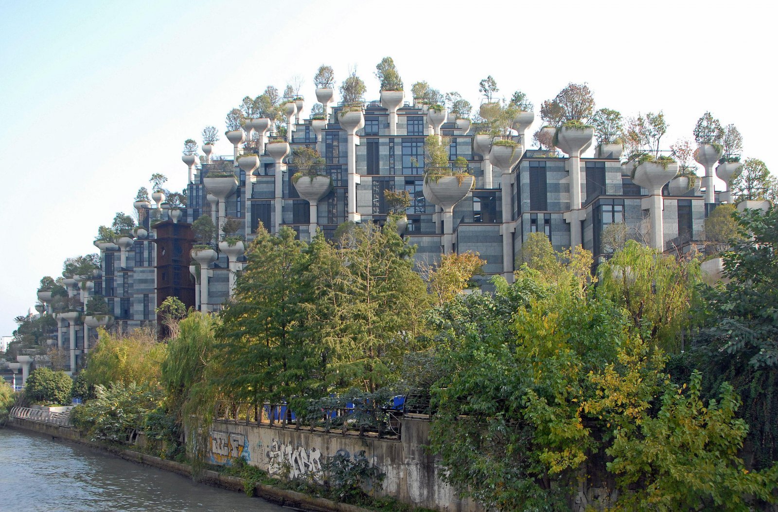 建物そのものは白いコンクリート製だが、1,000本以上の樹木、そして25万以上の植物が建物を覆うように配置される。周囲の水、緑と共鳴するだけでなく、敷地内の生物の多様性を向上させ、気温低下にも貢献する。環境と景観の両方の解決策を「樹木に託した」建築物と言えるだろう。