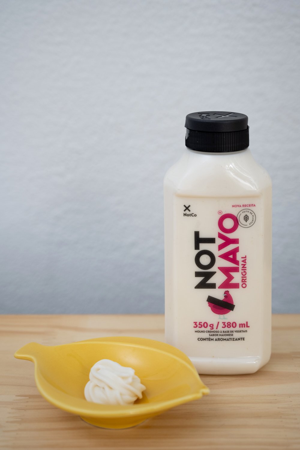 まずは、ベゾスもお気に入りというNotMayo。ややさっぱりしているが、卵不使用と知らなければ、市販の通常のマヨネーズと変わらない舌触り。ブラジルのマヨネーズにはオイリーで酸味の弱いものが多いので、むしろ味のよさから選びたい一品だ。