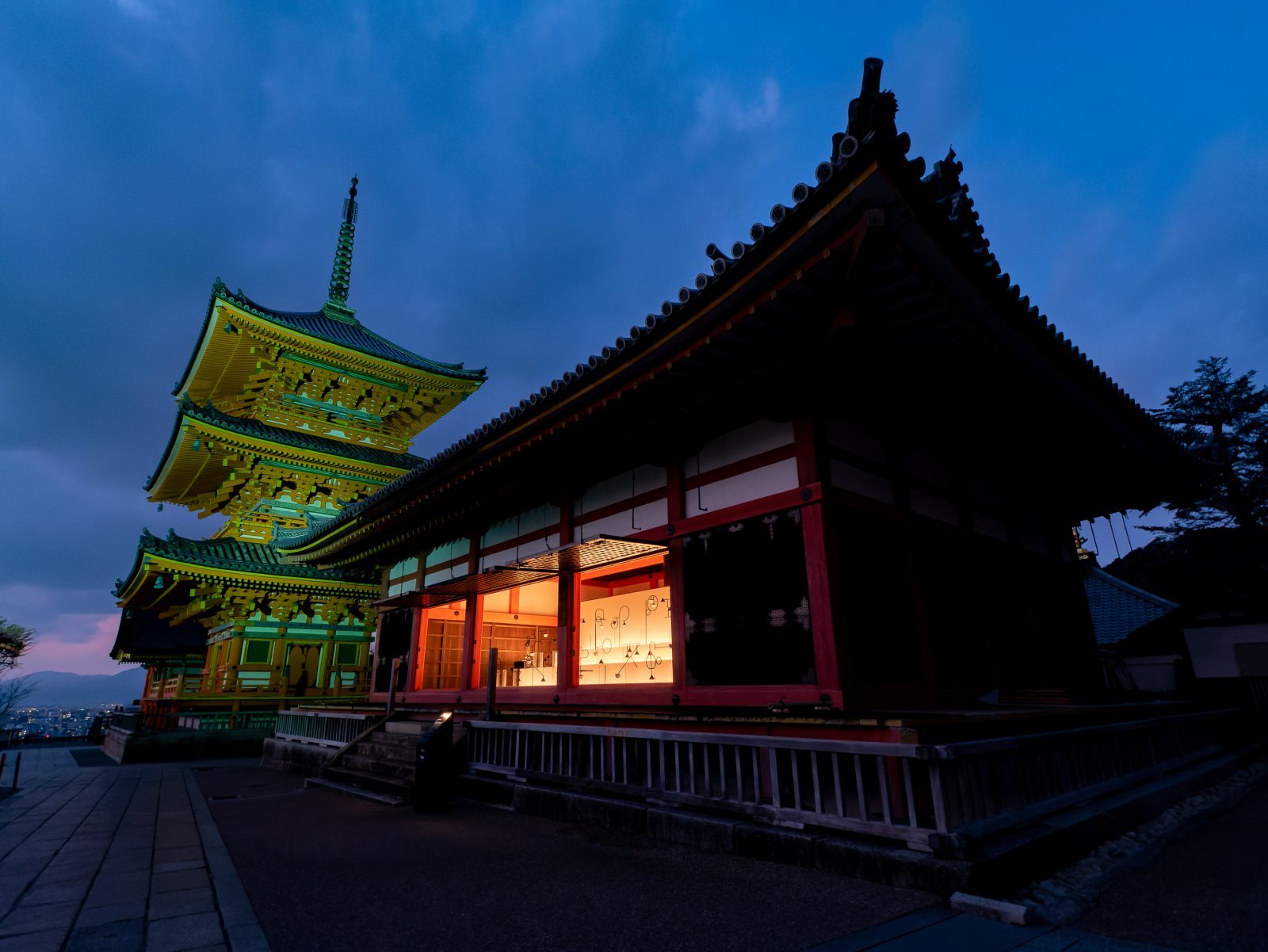建物の古いテクスチャーとも清水寺周辺の空気感ともマッチする、素晴らしい光でした。