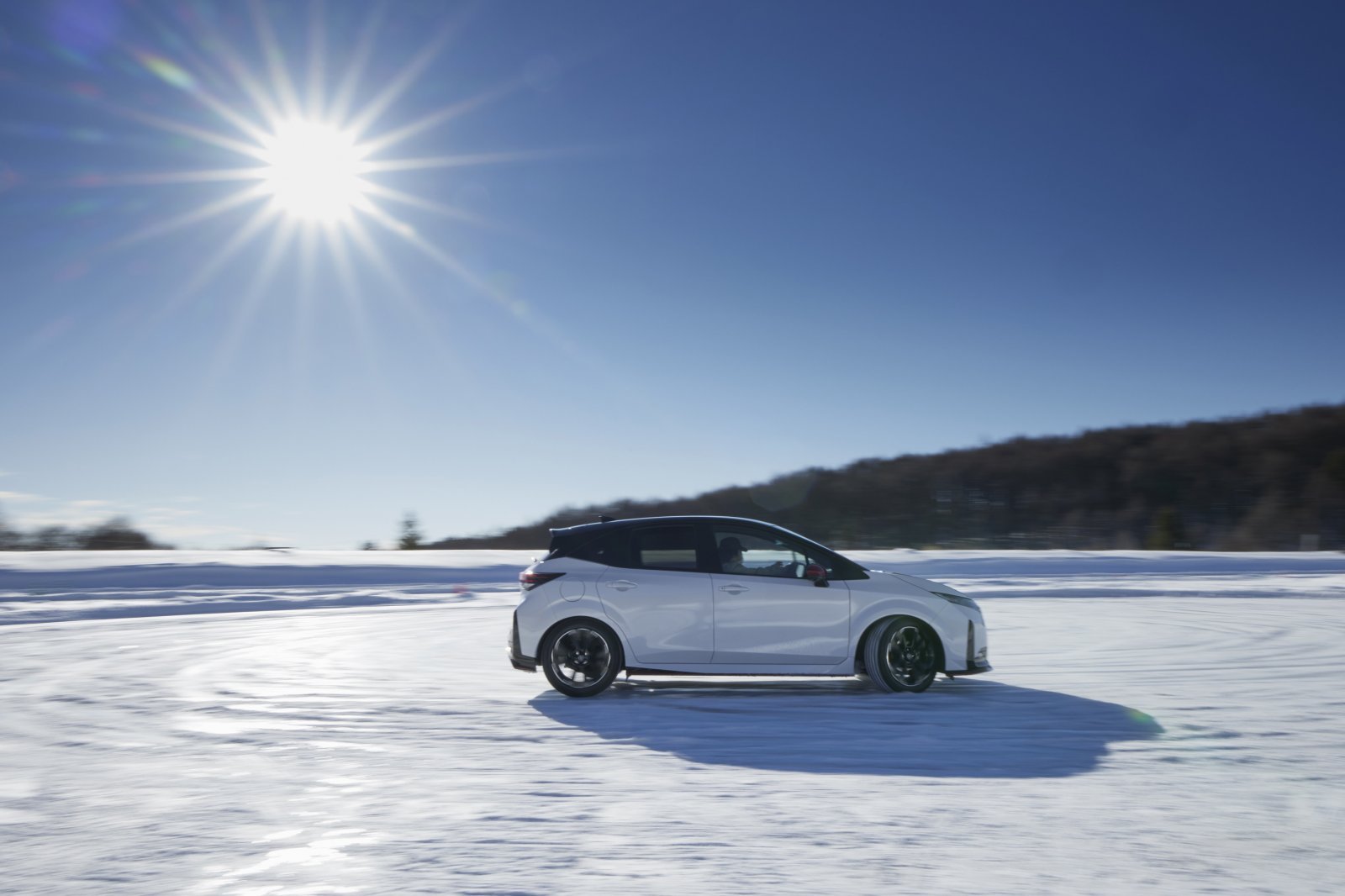 eパワー搭載のノート・シリーズの特長は、燃費だけでない。そこが氷の張った女神湖でのドライブ体験の趣旨だ。