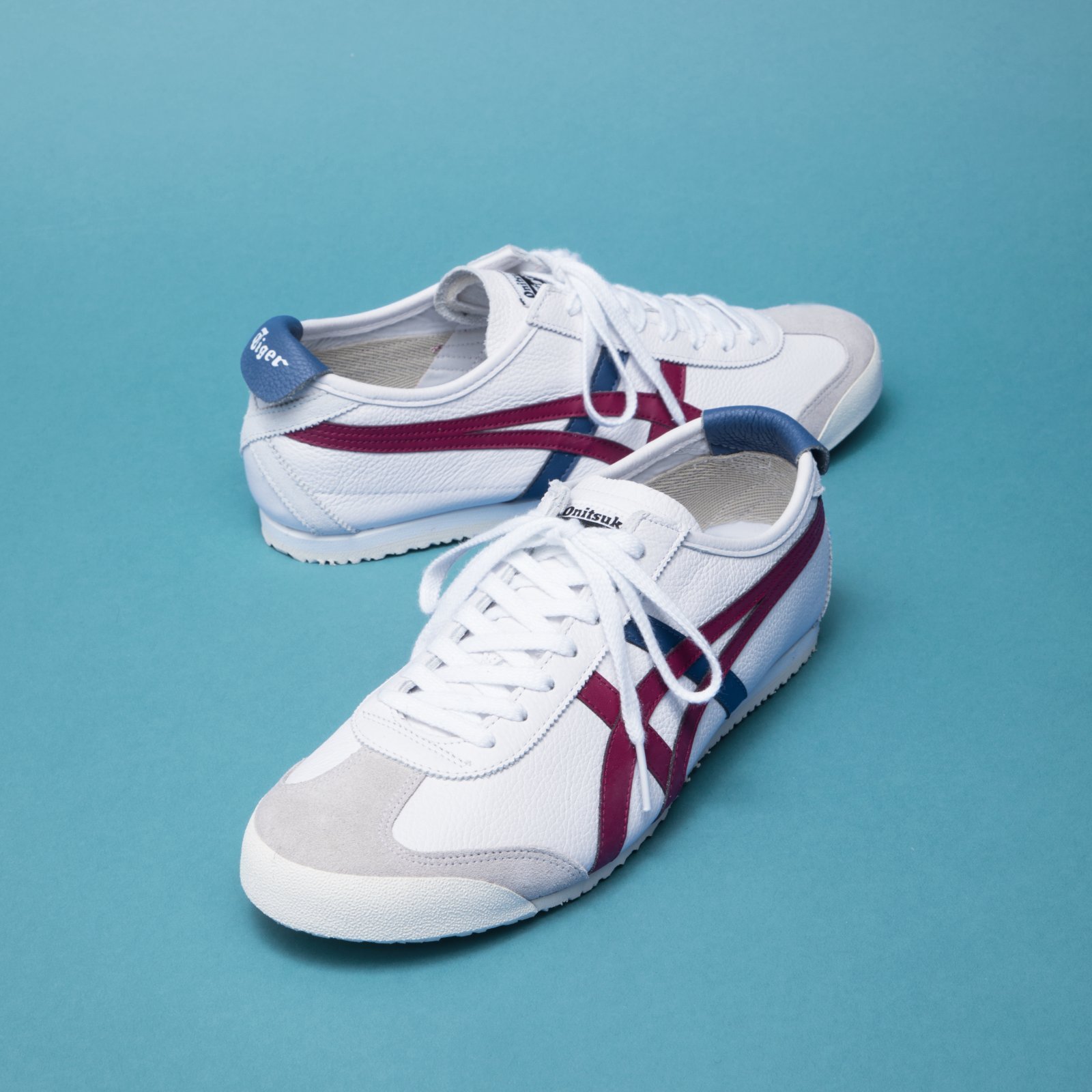 写真は1961年の「リンバーアップ」と66年の「リンバー」を掛け合わせて誕生したモデル「メキシコ66」。やや細身のフォルムに、従来とは異なる色使いでラインが配されている。お馴染みのディテールであるヒールフラップも健在だ。