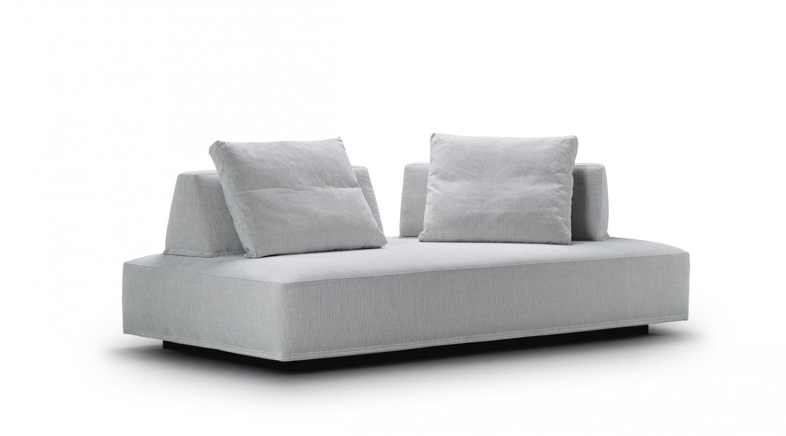 1895年にデンマークで馬車のシートとボディをつくるメーカーとして創業したアイラーセン。その後、バスのシートを手がけてきた経験を活かして70年代からソファの製造を始め、同国を代表するソファブランドとなった。「プレイグラウンド」はフラットなシートと、自由に配置できる背もたれを組み合わせた個性的なデイベッド型ソファ。背もたれは適度な重量があり、座面と接する部分には滑り止め素材を使っているため、大人一人が寄りかかっても動かず、しっかりと受け止めてくれる。背もたれを短手に置けばシェーズロングに、斜めに置くことも可能で、配置次第さまざまな方向から座ることができる。シート下のS字スプリングと何層にも重ねたクッション構造によって、ソファの形状を美しく保ちながら、快適な座り心地を提供してくれる。